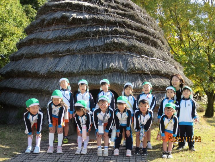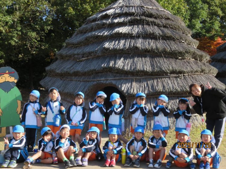 今日は、秋晴れのもと、ガーネット組さんは鹿児島県上野原縄文の森に園外保育に出かけました🚌
