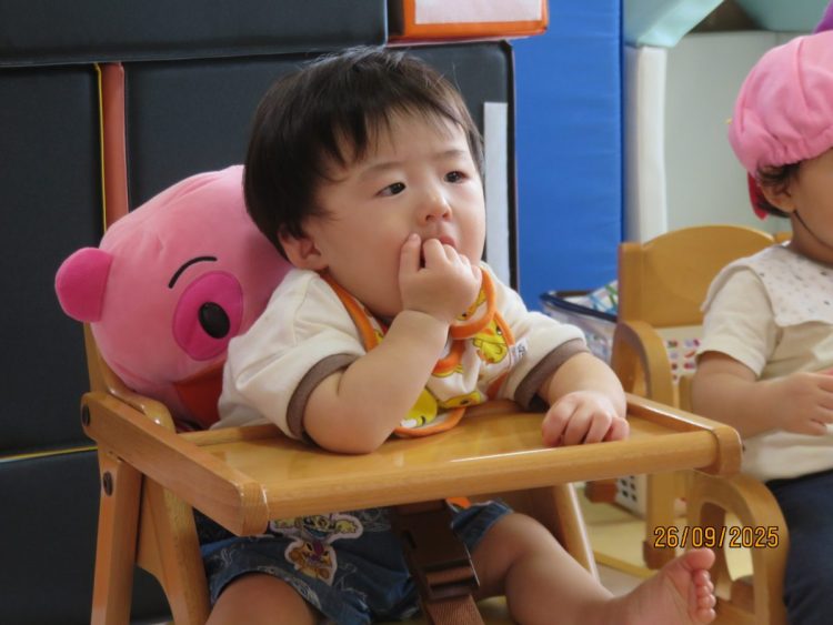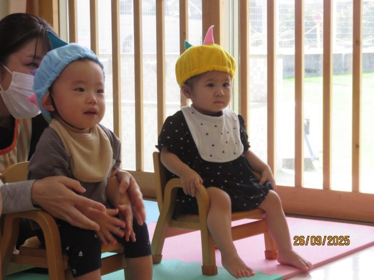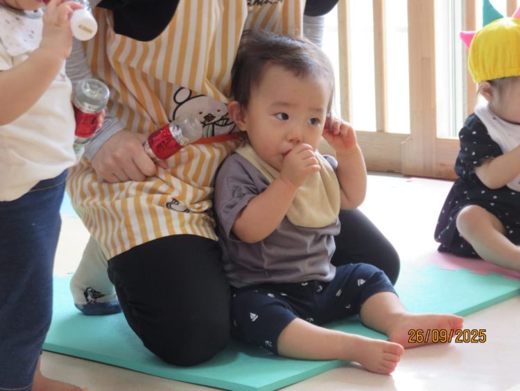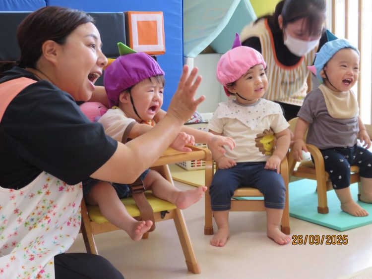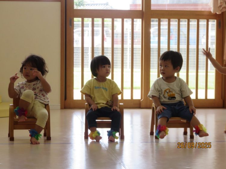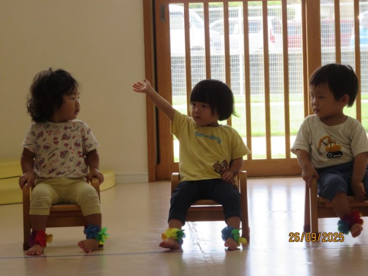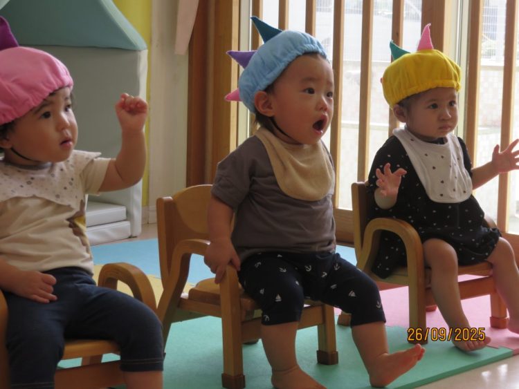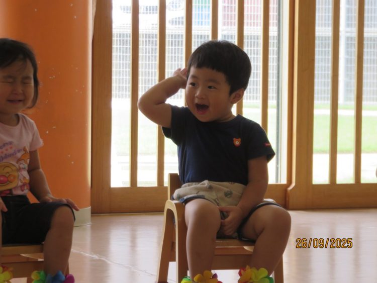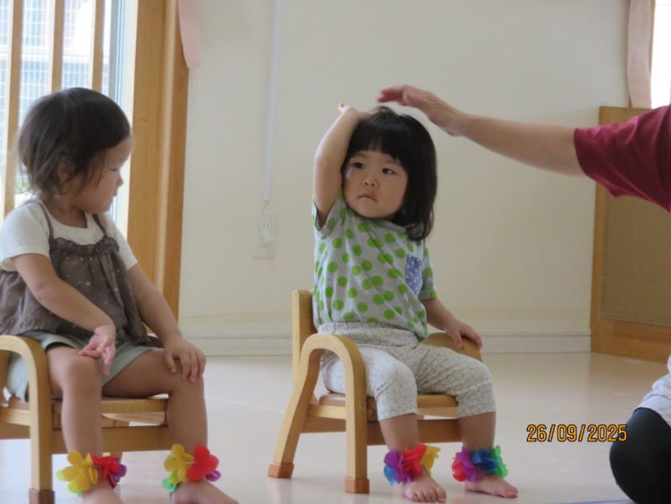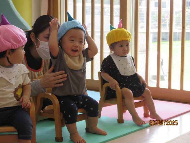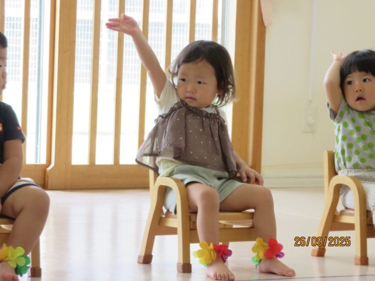 M先生が、指あそびの曲を歌い始めると、子どもたちも歌詞に合わせて表現する姿が見られました🥰