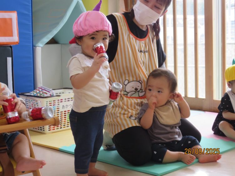 次は、マラカスを持って、シャカシャカ・フリフリ🎵