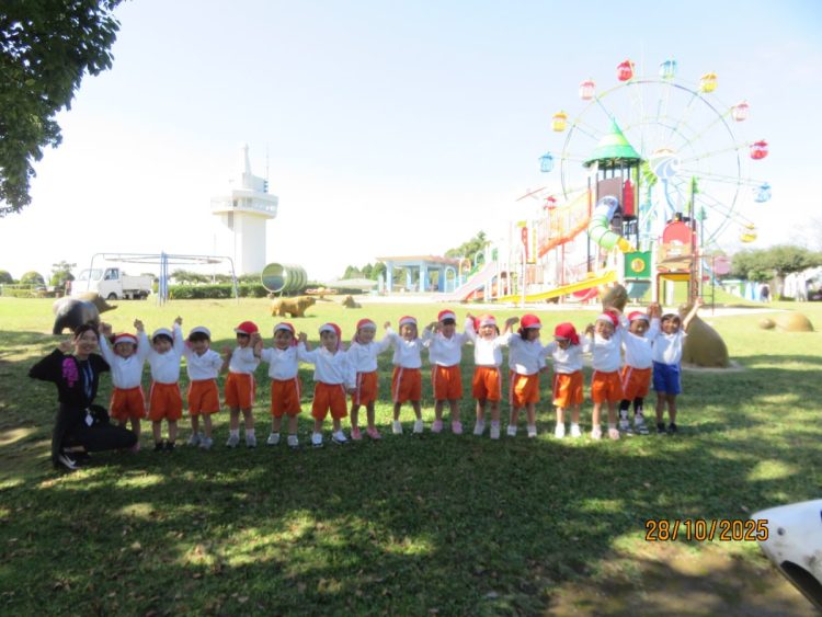 今日は、気持ちのいい秋晴れのもと園外保育にガーネット組さんがお出かけしました🧸✨