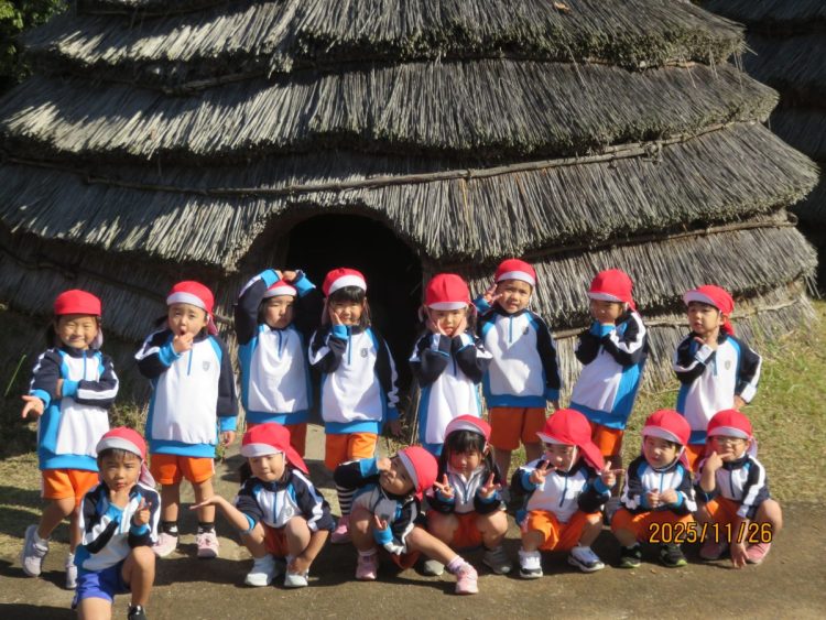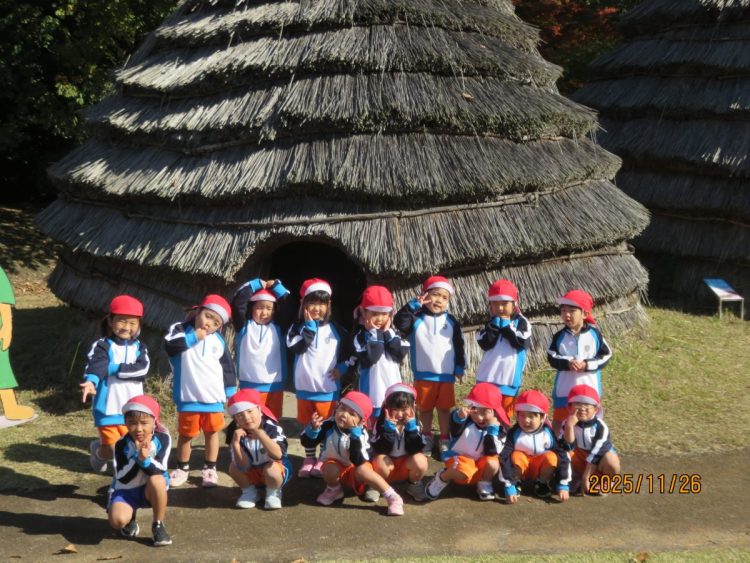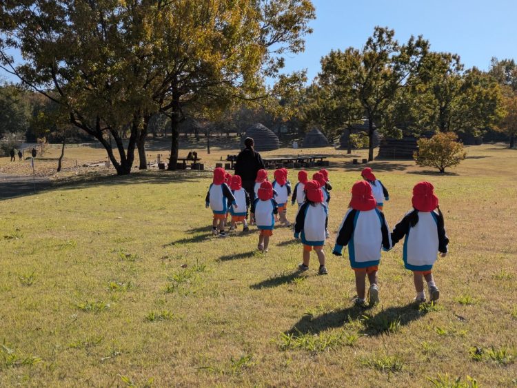 今日は、秋晴れのもと、ガーネット組さんは鹿児島県上野原縄文の森に園外保育に出かけました🚌
