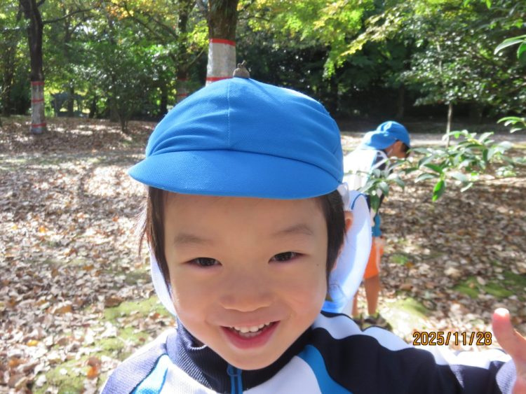 受付の方に元気よく挨拶をし、楽しみにしていたどんぐり拾いへレッツ ゴー😆🎵