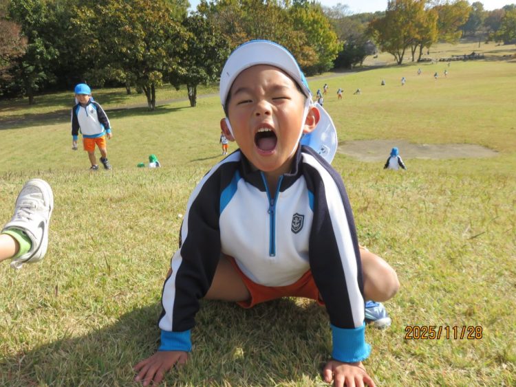 前回の園外保育は、あいにくの曇り空だったので、先生たちは秋晴れのお天気に安堵した様子でした😆💗
