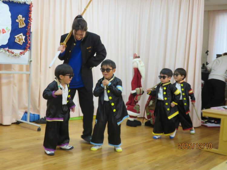 次は、ガーネット組さん🐰✨K先生と竹刀を持ってお遊戯を力強く踊りましたが・・・