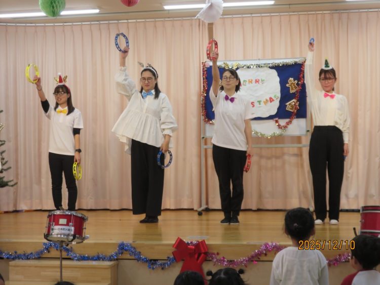 子どもたちは、無事サンタさんからプレゼントがもらえて、そして先生たちは子どもたちの楽しそうな笑顔のプレゼントがもらえてとっても楽しいクリスマス会となりました🎅✨