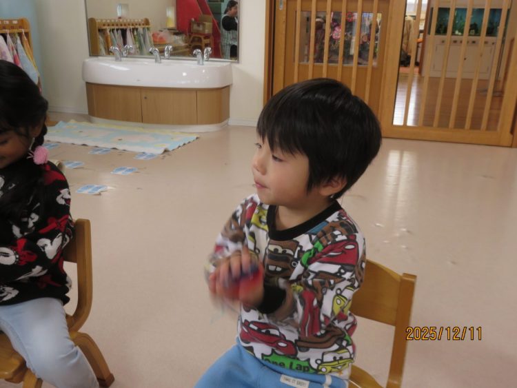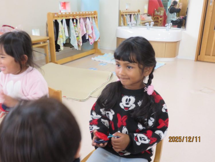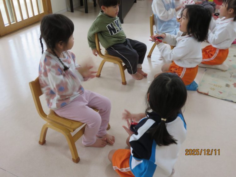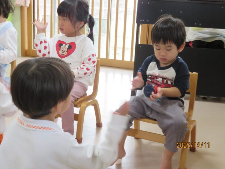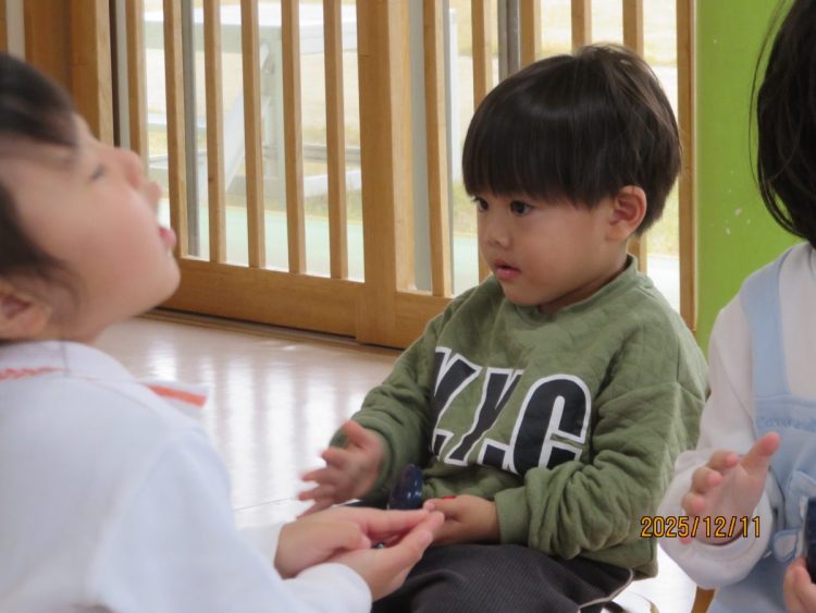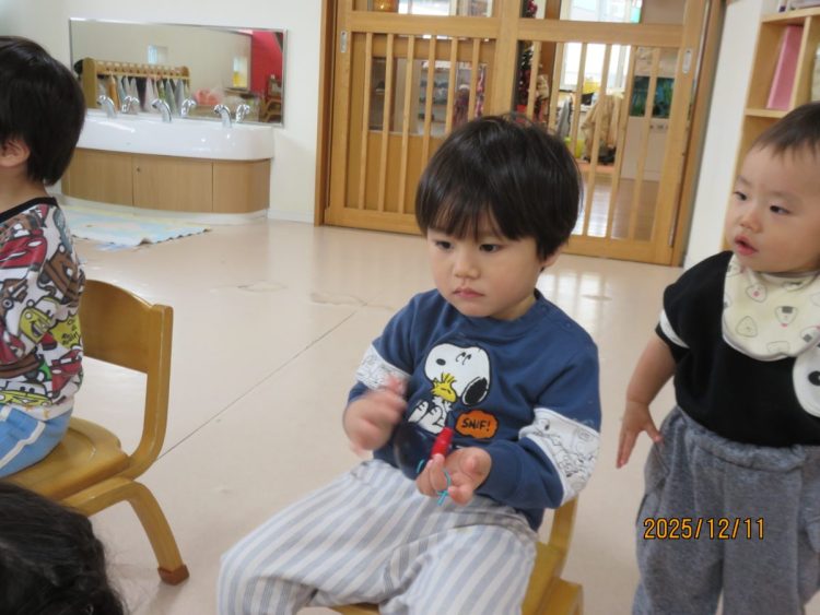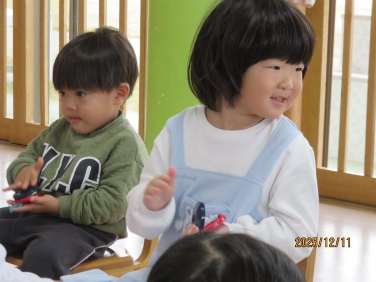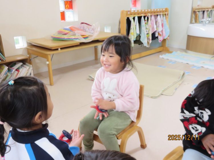 12月11日(木)、ルビー組さんのお部屋から楽しそうな声と音が・・・🎵