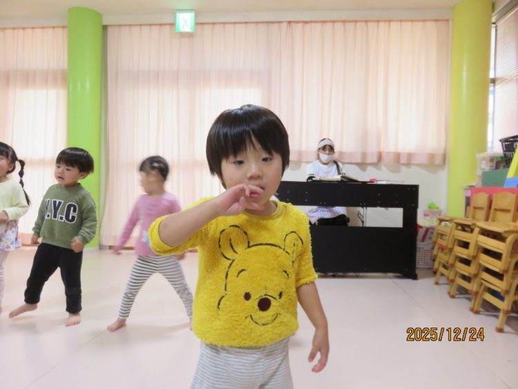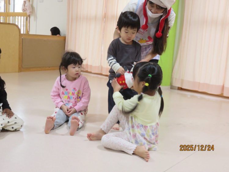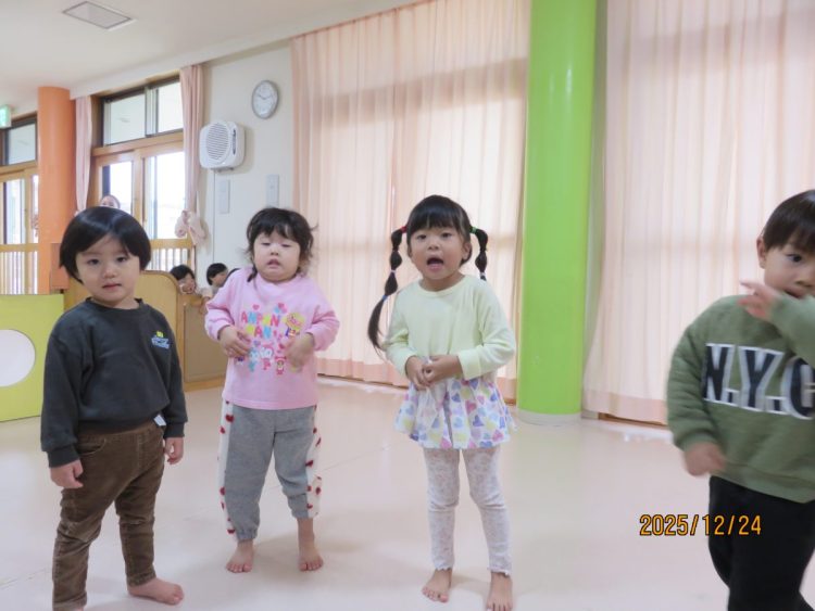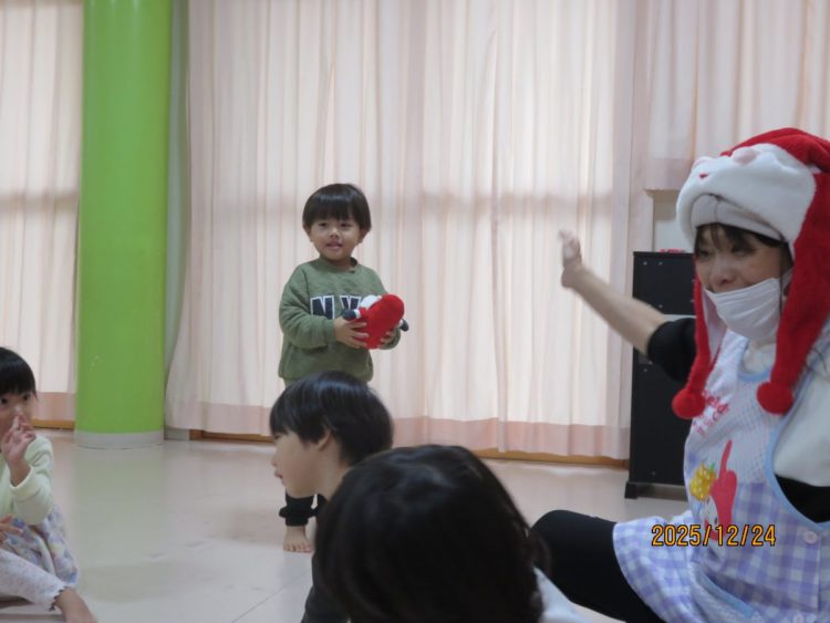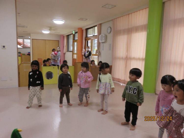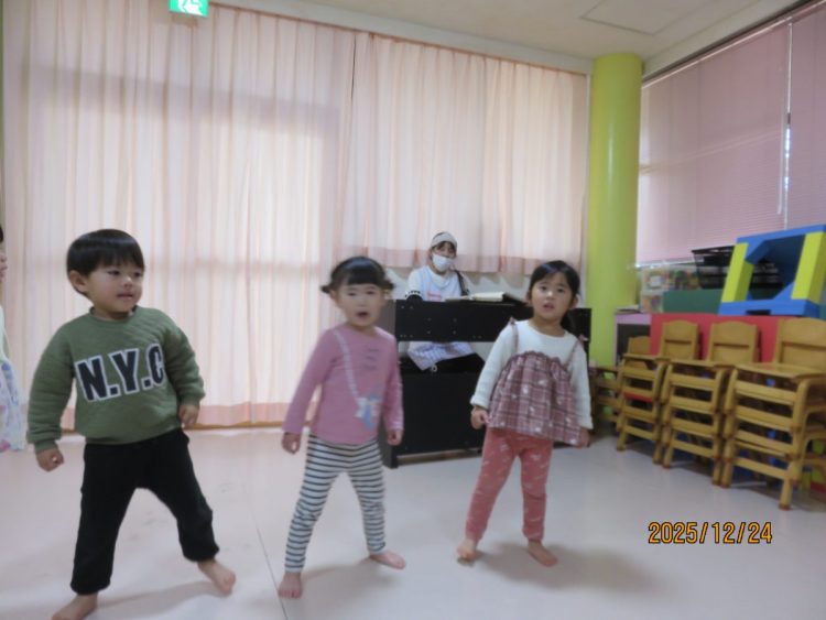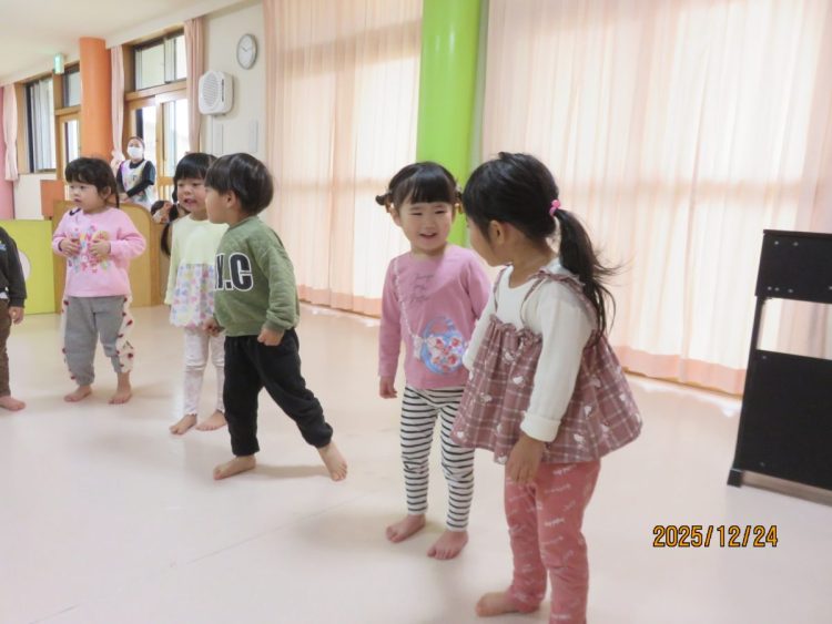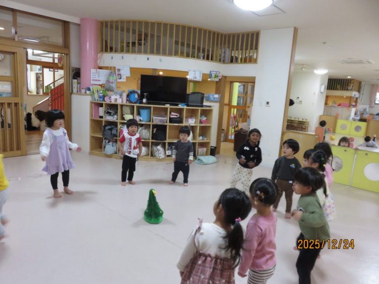 みんなでおおきな輪になって、クリスマスソングを歌いながら行いました🧸✨
