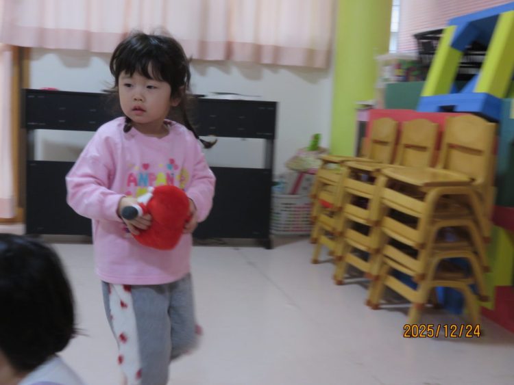 そして、ルビー組さんからは、クリスマスソングと共に子どもたちのにぎやかな声が聞こえてきましたよ🎄🎵