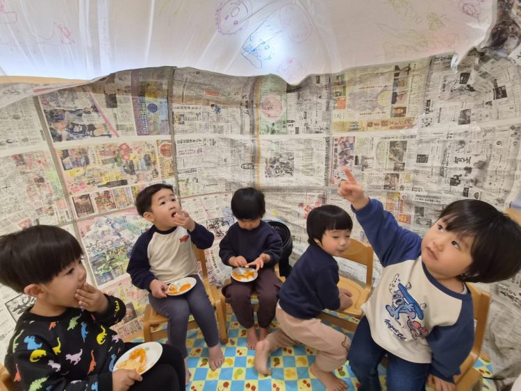 かまくらに見立てて、楽しみました😄