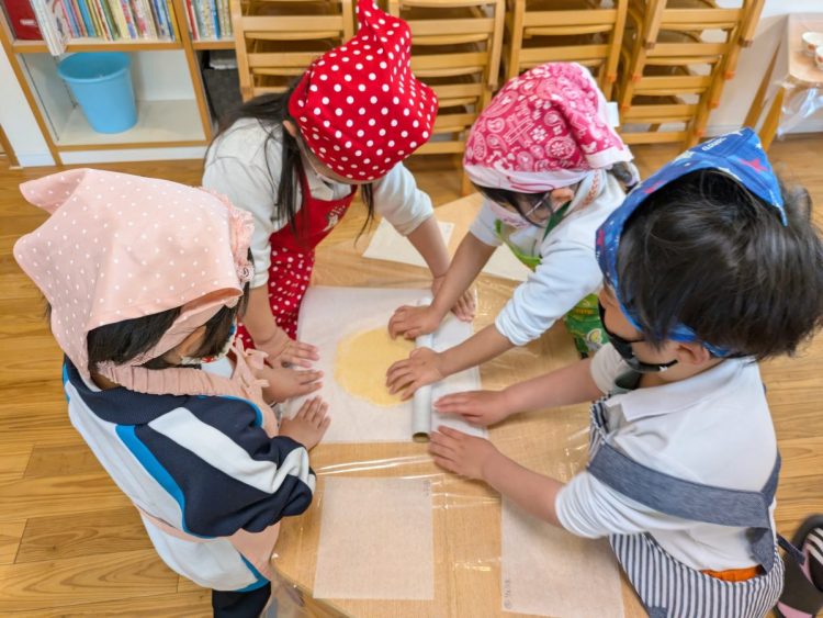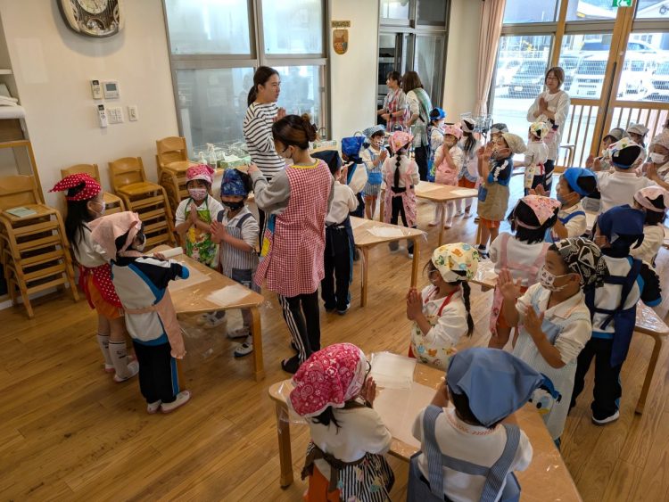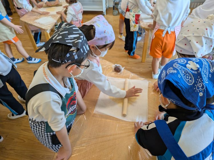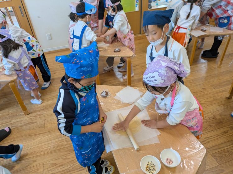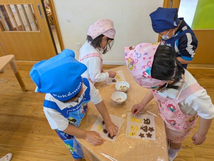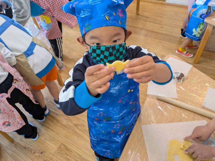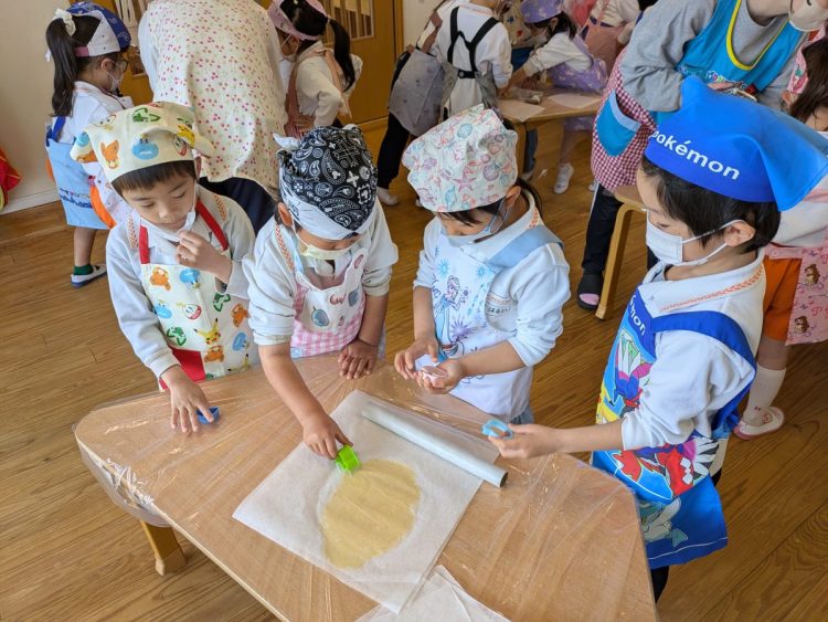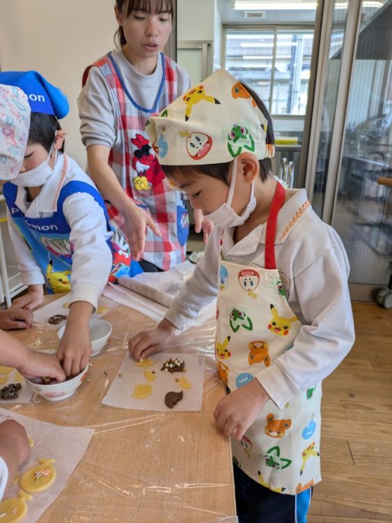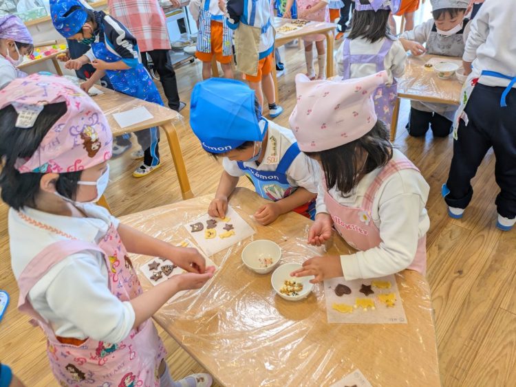サファイア組とエメラルド組の子どもたちが協力してクッキー作りに挑戦をしました。