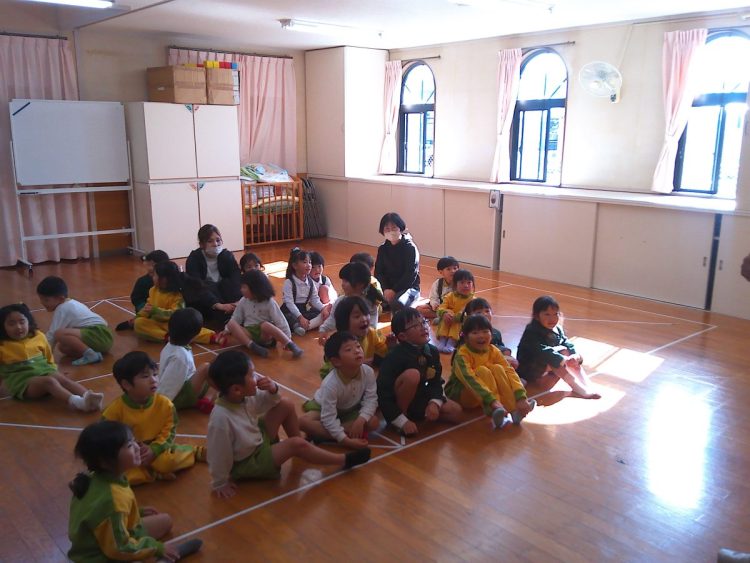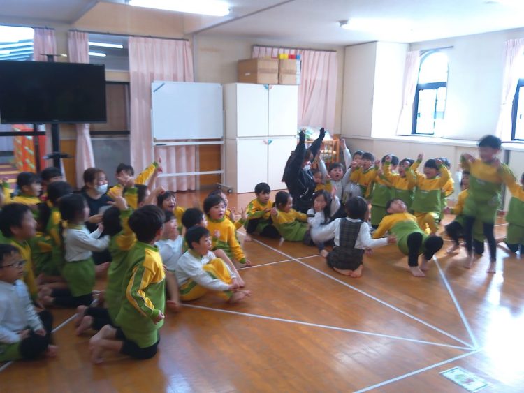 昨日(12日)は、「英語あそび」の日でした。いつものジェイ先生に来園していただいて、楽しく英語活動を行いました。年長・年少さんの様子は都合が悪く撮れませんでしたので、年中さんのゲーム的な要素を取り入れた楽しそうな活動の様子のみ動画と画像でお伝えします。ジェイ先生、いつもありがとうございます。
