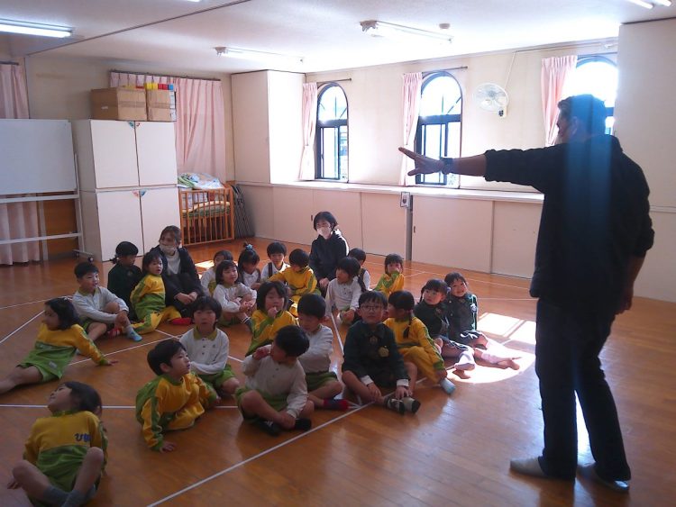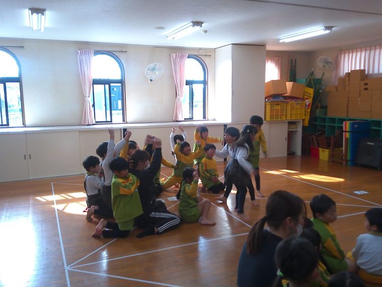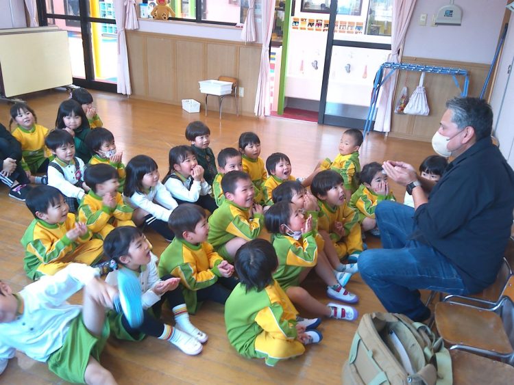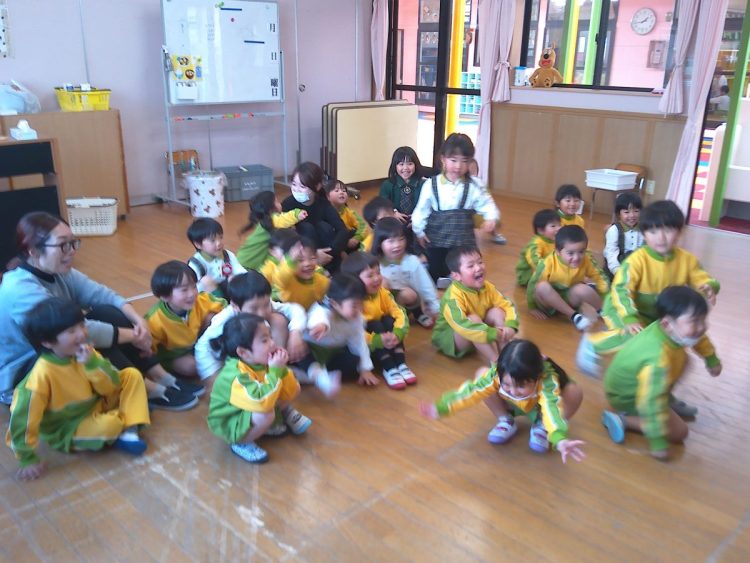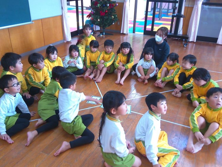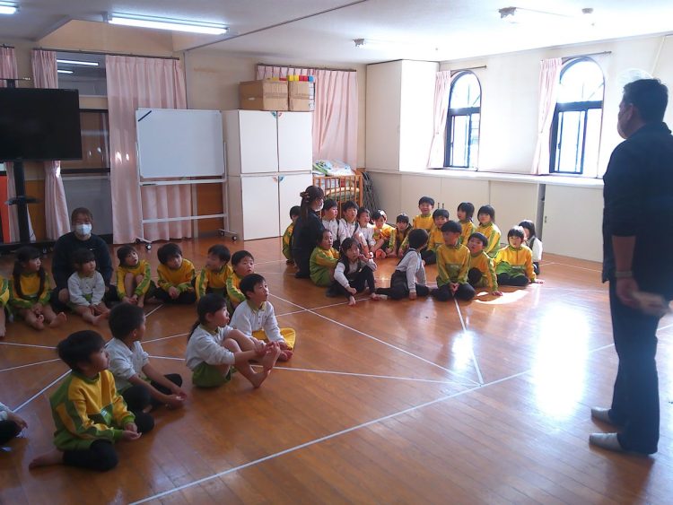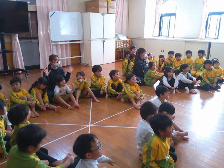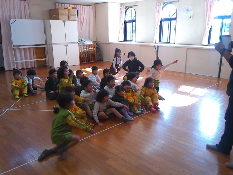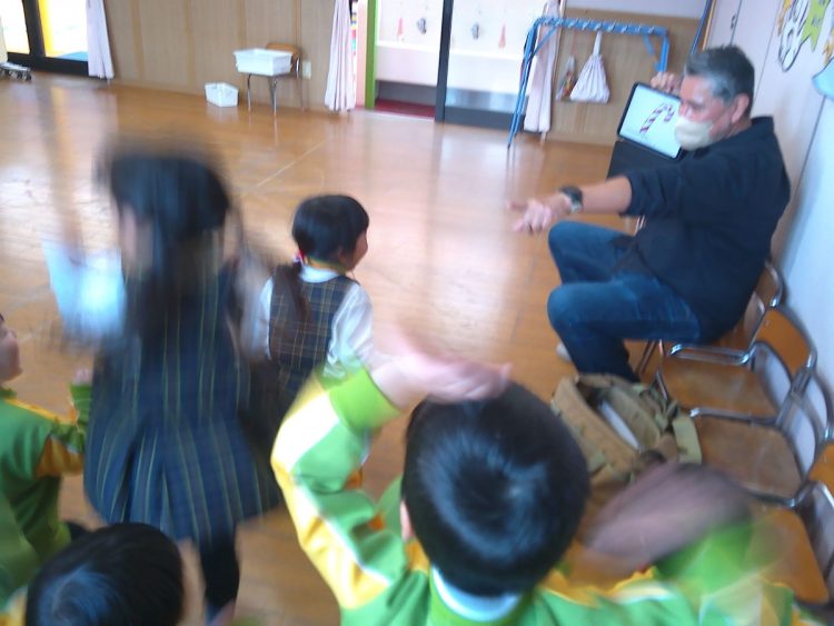 昨日(12日)は、「英語あそび」の日でした。いつものジェイ先生に来園していただいて、楽しく英語活動を行いました。年長・年少さんの様子は都合が悪く撮れませんでしたので、年中さんのゲーム的な要素を取り入れた楽しそうな活動の様子のみ動画と画像でお伝えします。ジェイ先生、いつもありがとうございます。