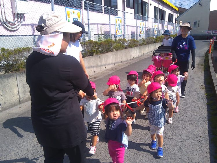 お散歩と野菜の収穫(りす組さん)