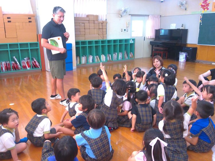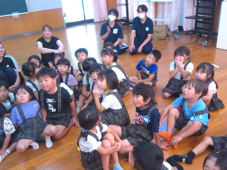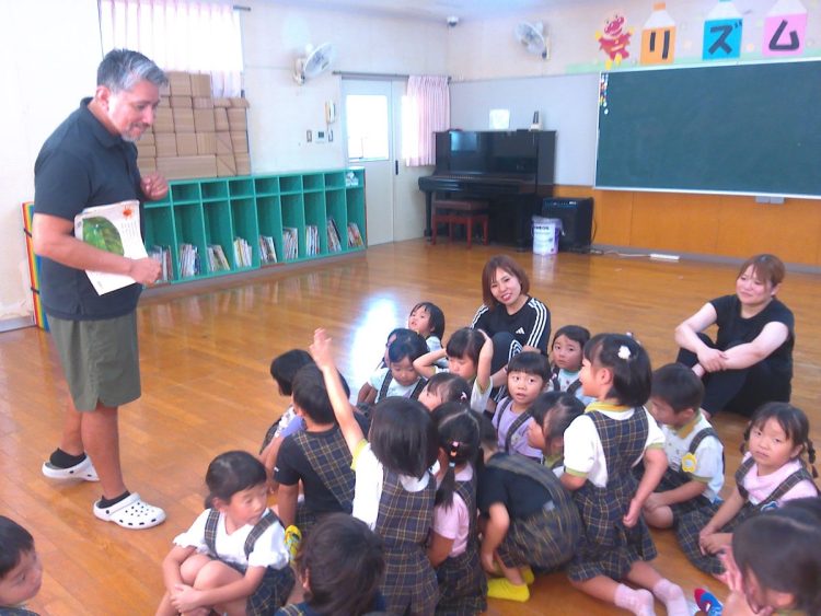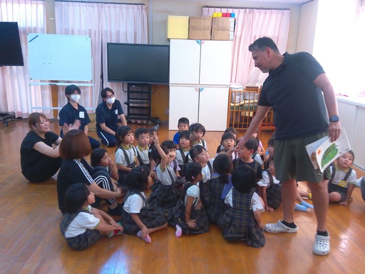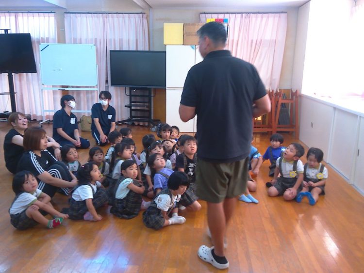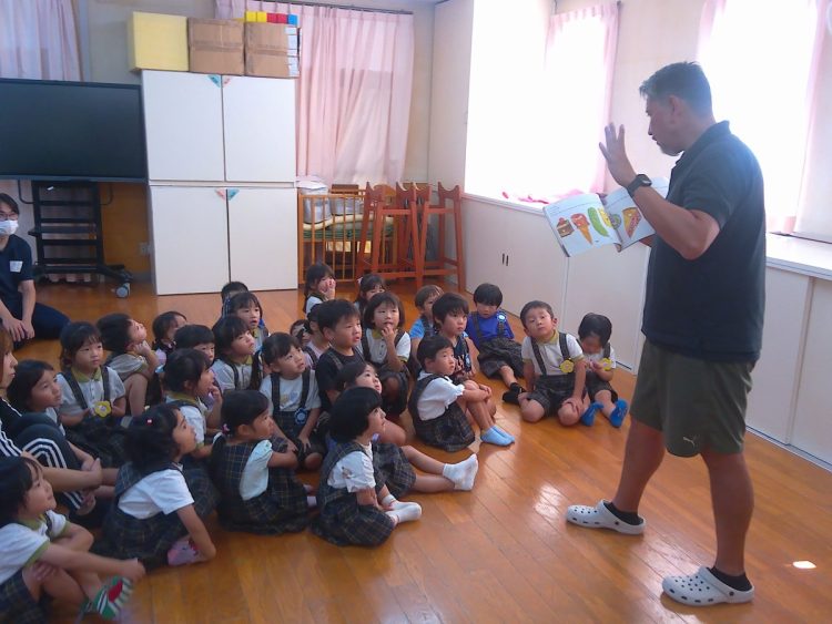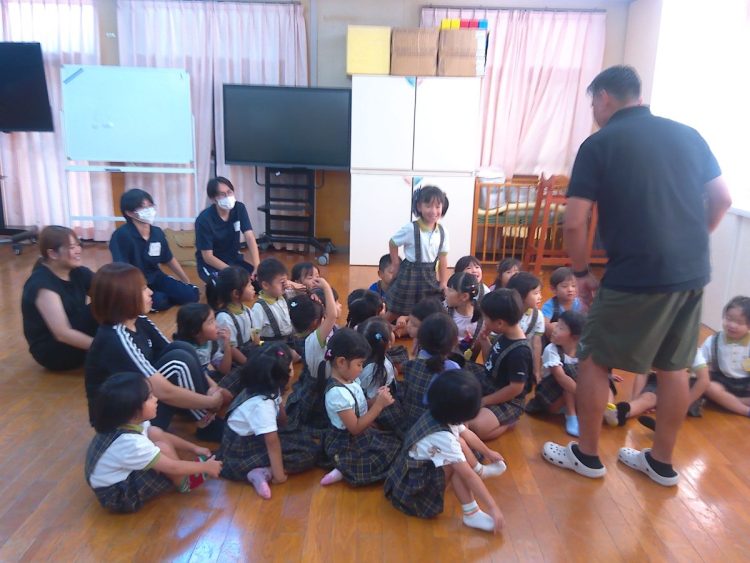 残念ながら最後の年中さんの活動しか写真を撮れませんでしたが、ジェイ先生と楽しく英語活動ができていました。ネイティブな発音はやっぱり難しい!!