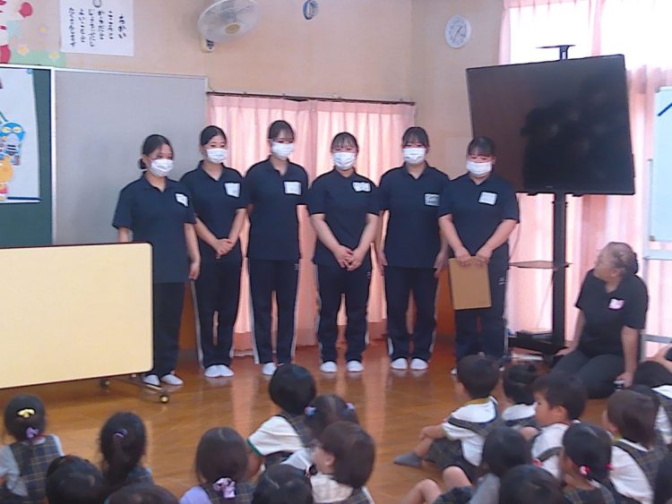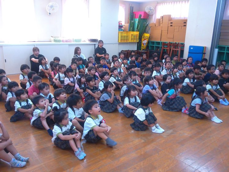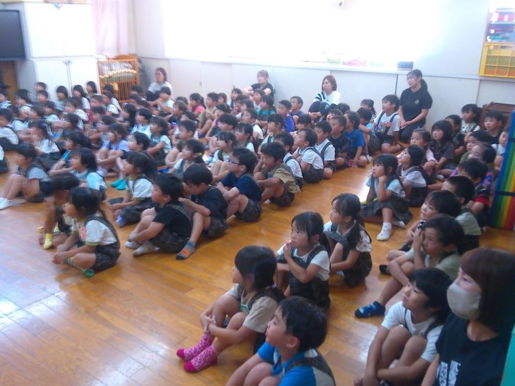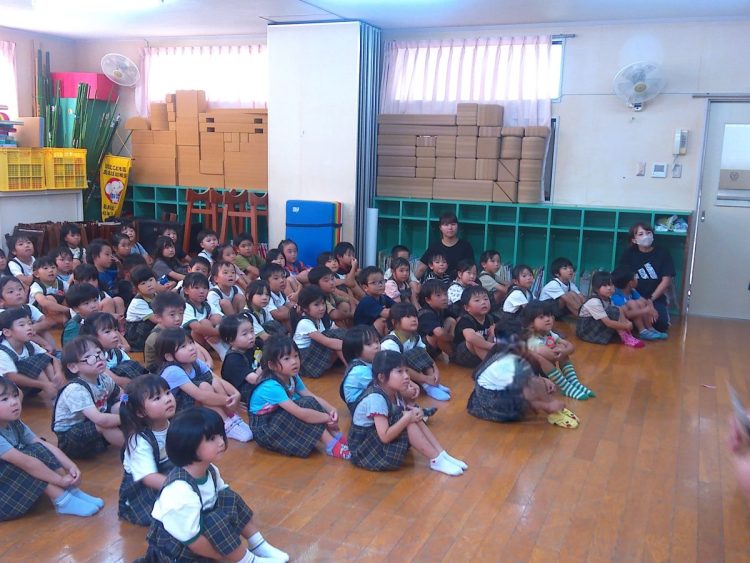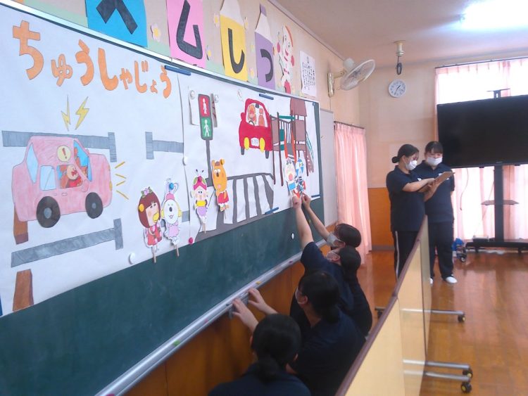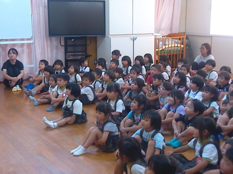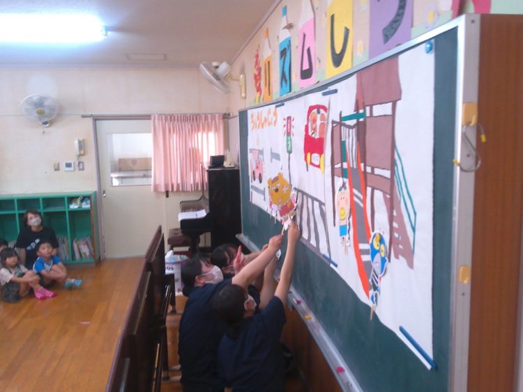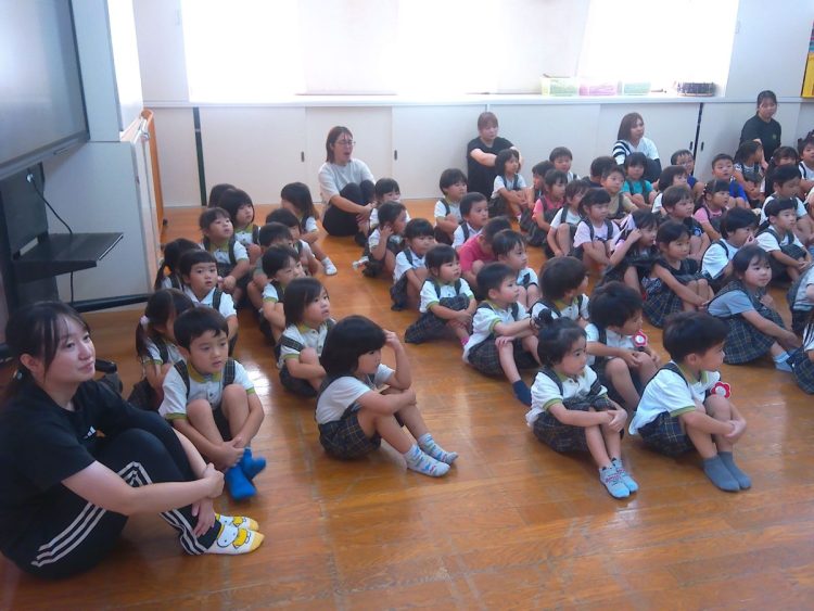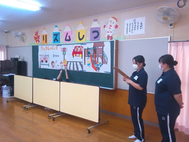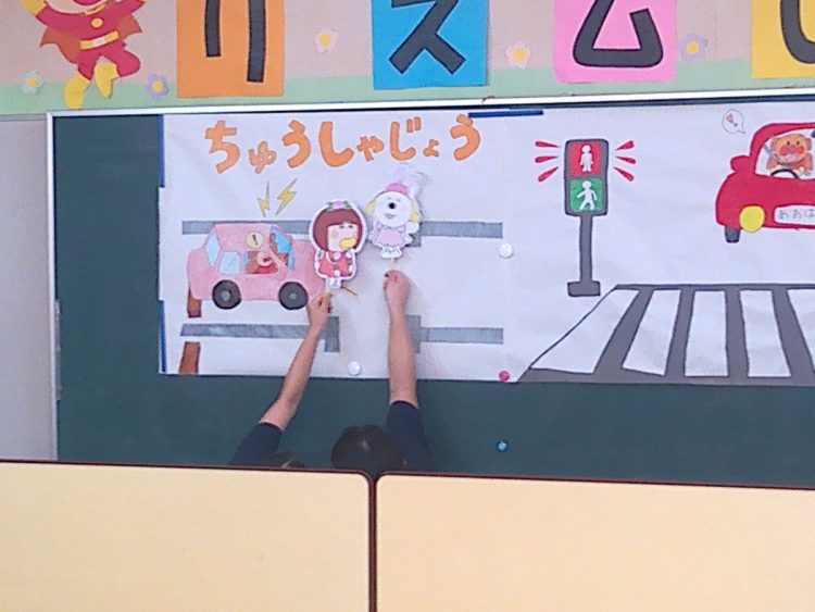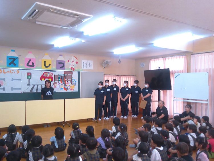 今日の午後から、龍桜生によるレクリエーションがあり、交通安全に関するペープサートを披露してくださいました。子どもたちも集中して反応も良かったです。ありがとうございました。