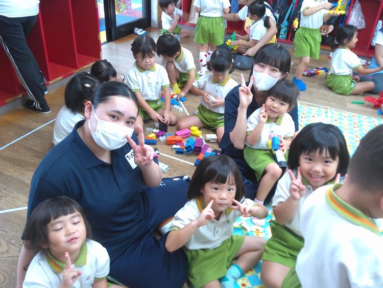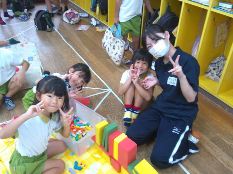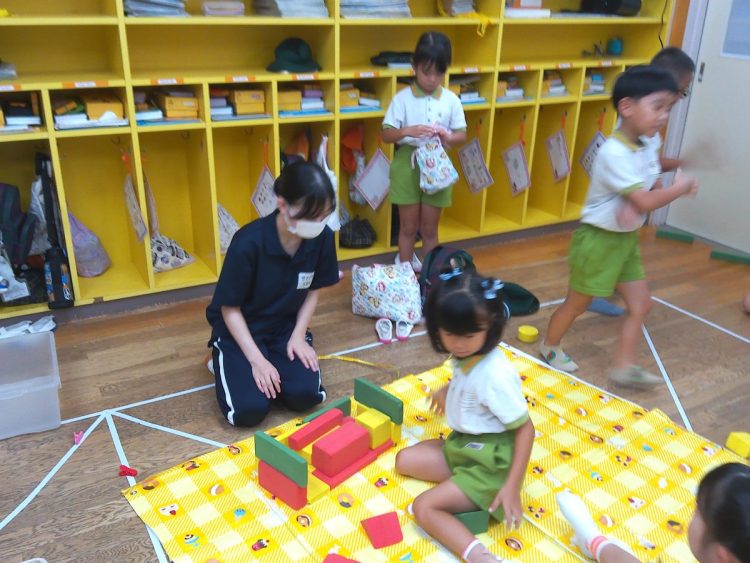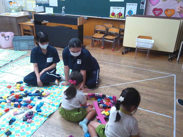 今日から龍桜高校看護科の学生6名が健常児実習に入りました。23日(木)までの予定で、以上児クラスに1人ずつ入っています。