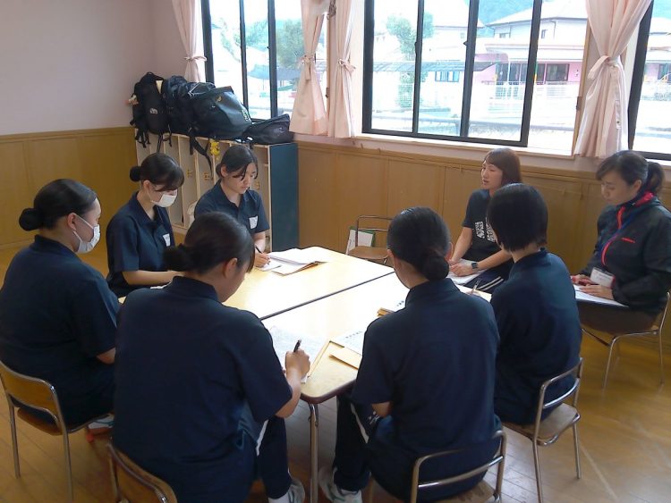 5日間の龍高校看護科の健常児実習が終了しました、最終カンファレンス(反省会のようなもの)では、気づいたこと、考えたことなどを発表し合いました。幼稚園の環境面での対策や個に応じた保育指導などが参考になったのではないでしょうか。今後は、学校での授業や試験、国家試験に向けて頑張ってほしいと思います。5日間、ありがとうございました。