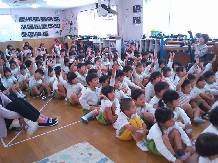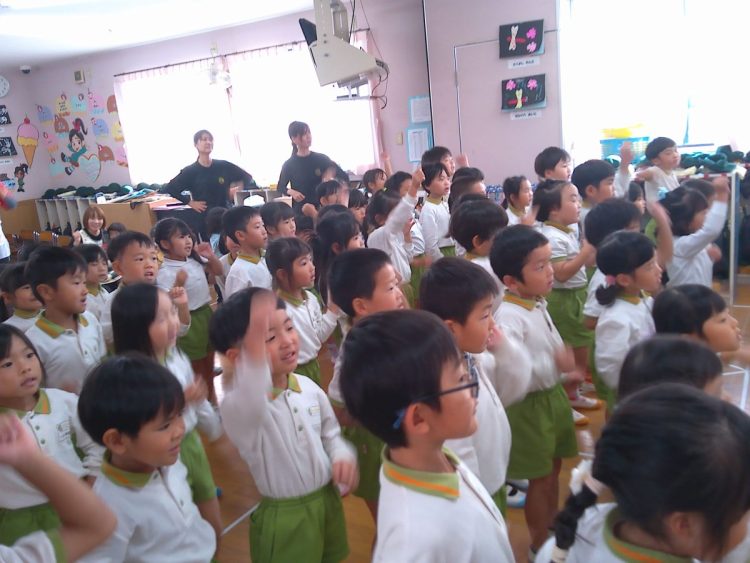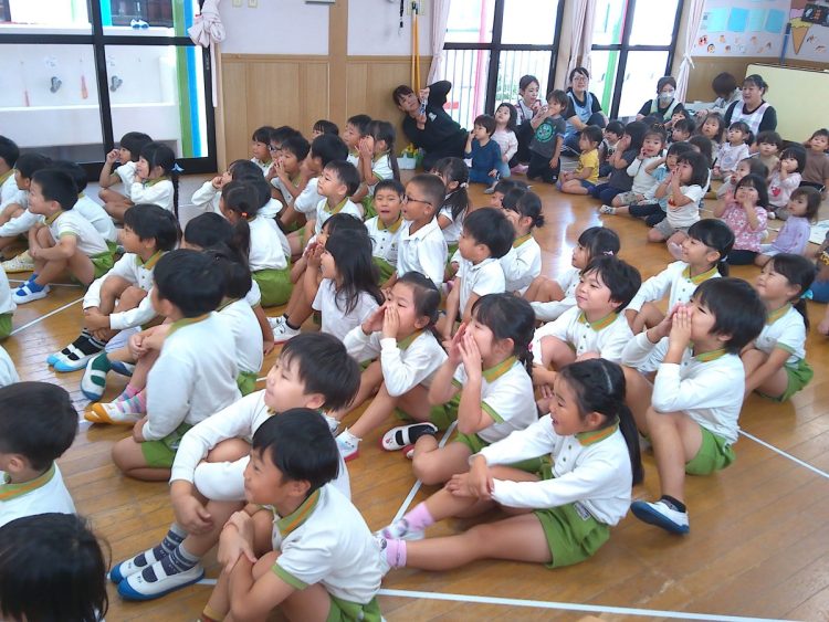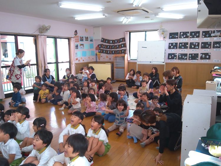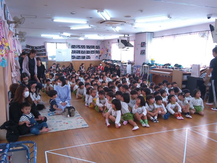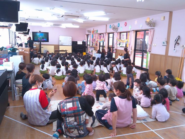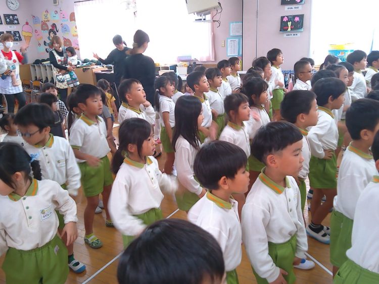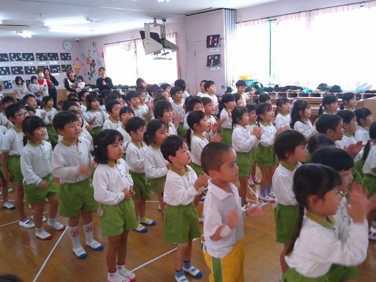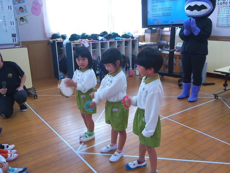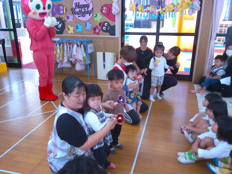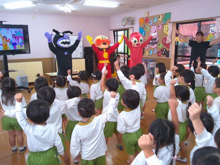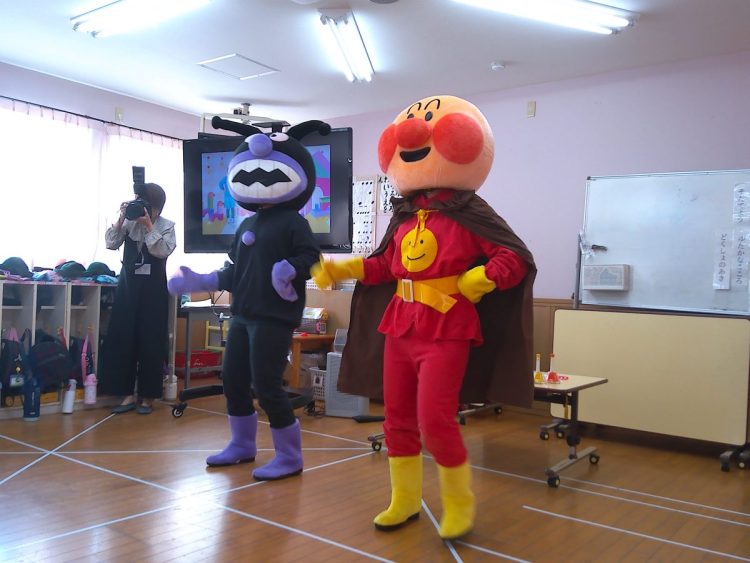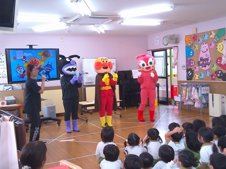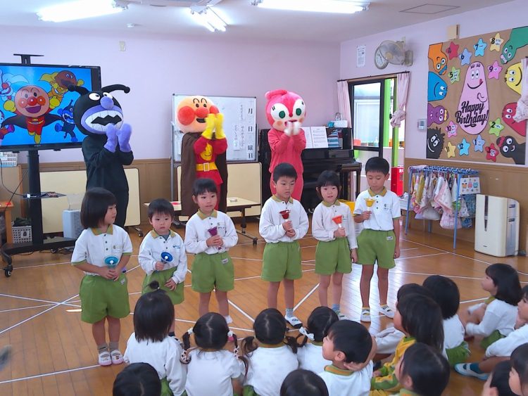 今日、アンパンマンとドキンちゃん、バイキンマンがあおば幼稚園にやってきました。アンパンマンたちは音楽のプレゼントとして、ハンドベルの演奏をしながらみんなで歌ったり、タンバリンなどを使って一緒に歌ったりして、みんなを楽しませてくれました。また、アンパンマン体操も一緒にしました。最後にクラスごとに記念撮影を行いました。来年もまた来てくれたらいいですね!