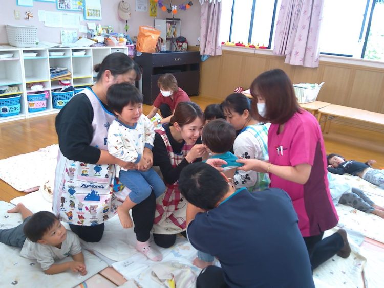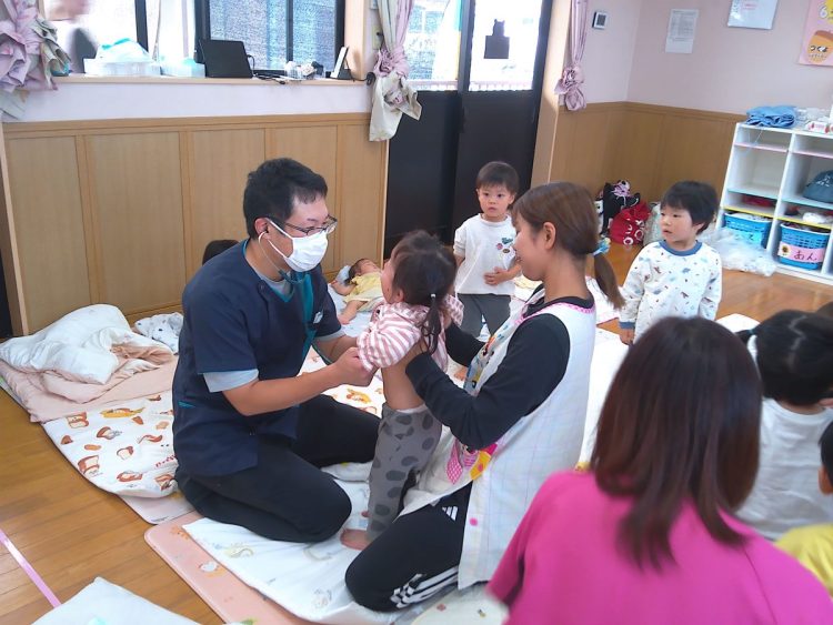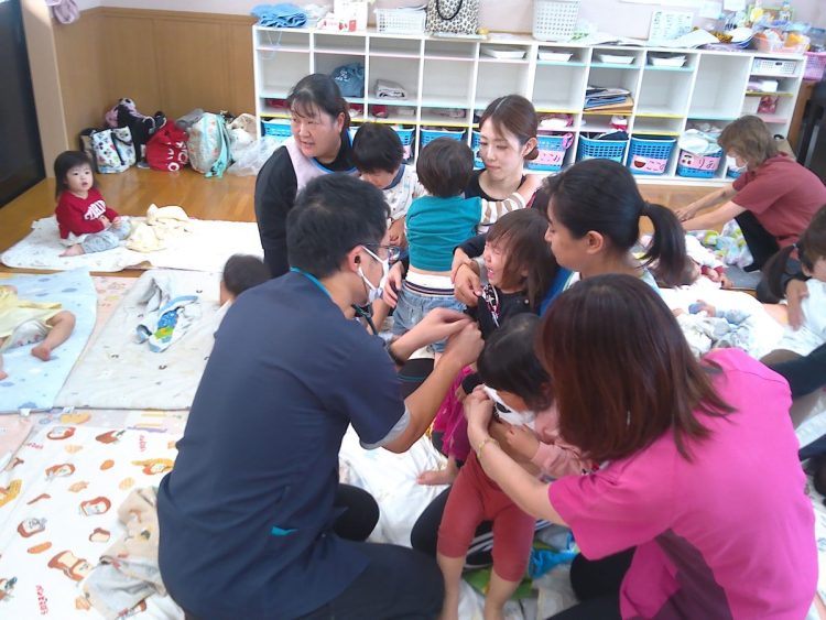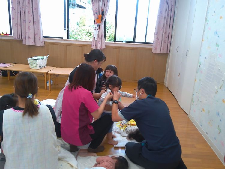 ↓未満児内科検診(まったく痛くありませんが、怖くて泣いている子が多かったです。)