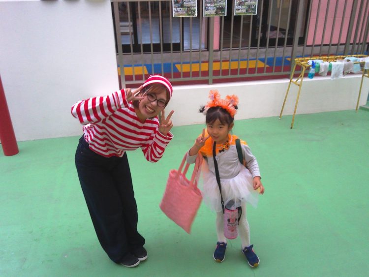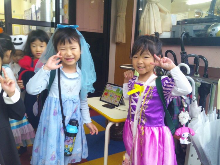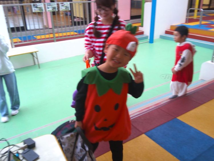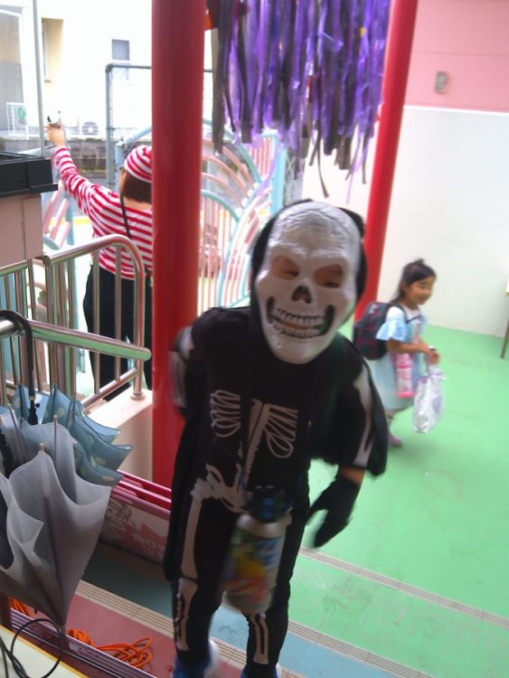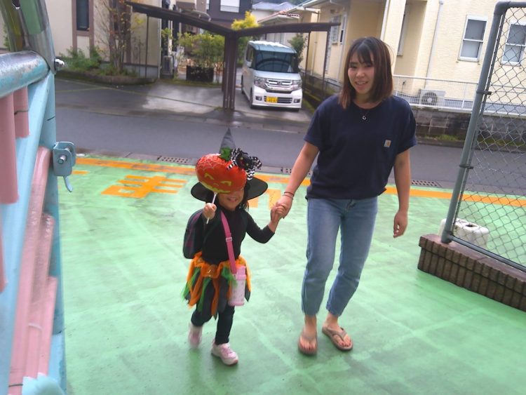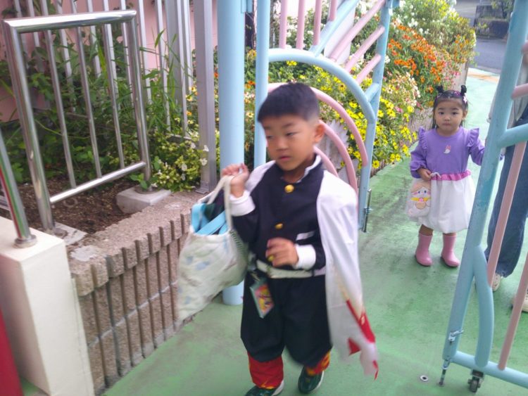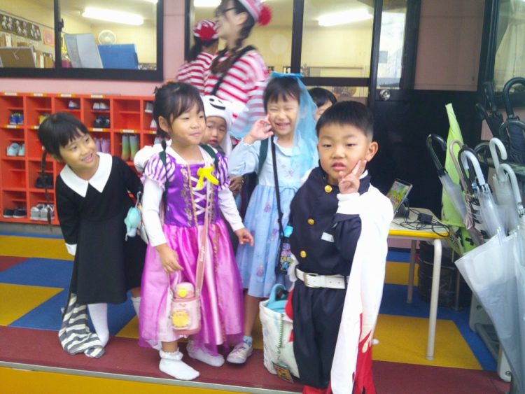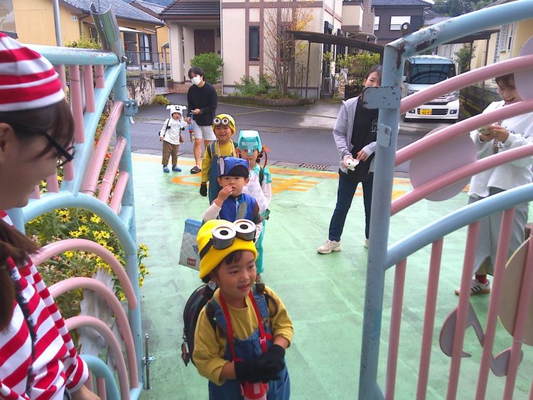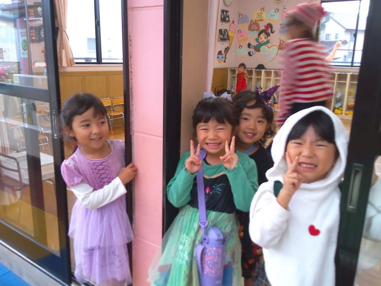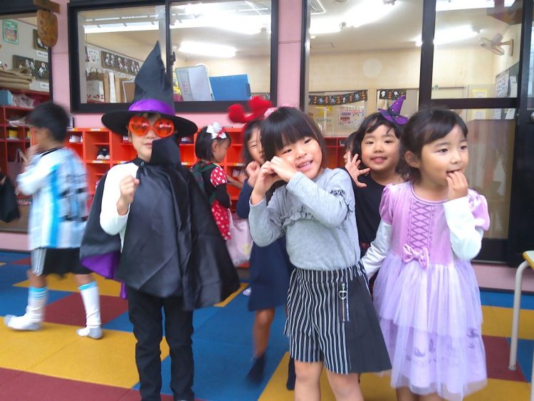 今日はハロウィンということで、「仮装しての登園」も可能でした。各家庭それぞれ工夫を凝らした仮装で登園してきていました。楽しい雰囲気で園生活がスタートしました。