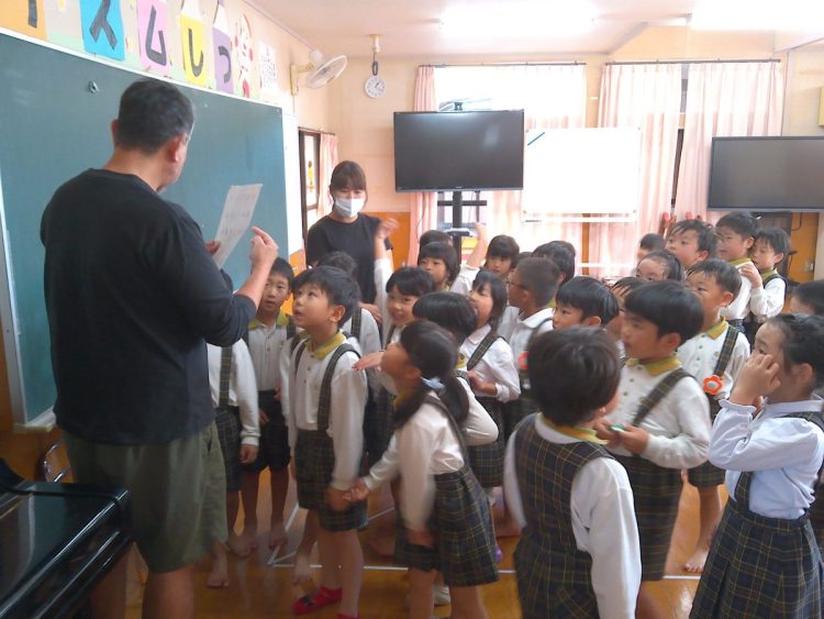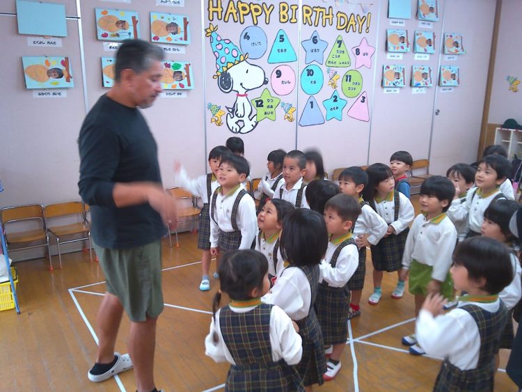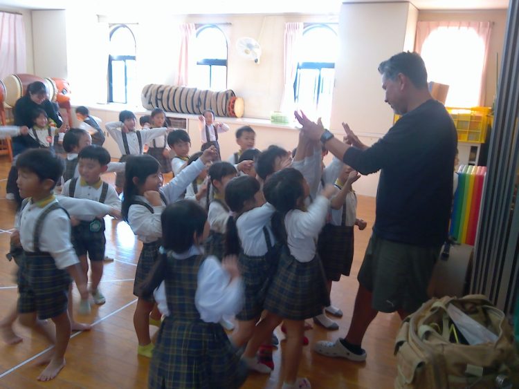 今日は午後から、「英語あそび」でいつものジェイ先生に来ていただきました。