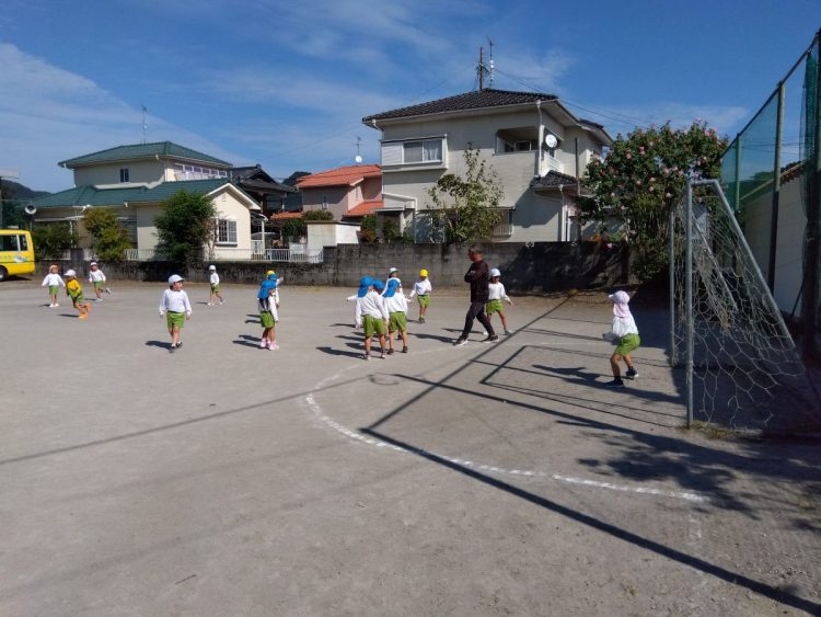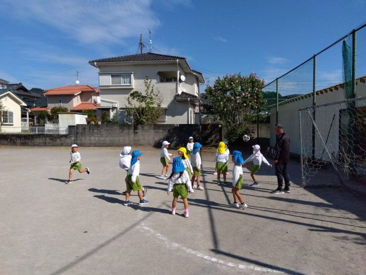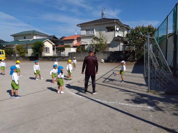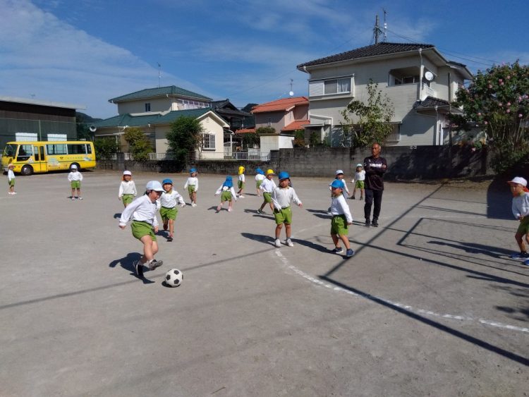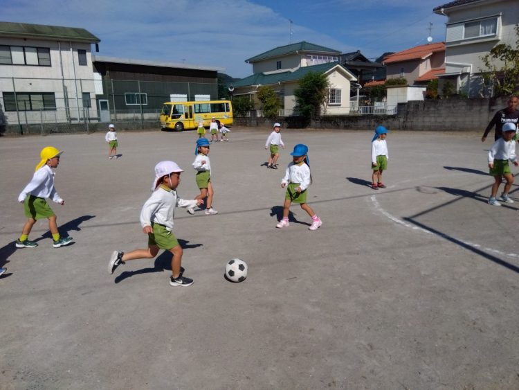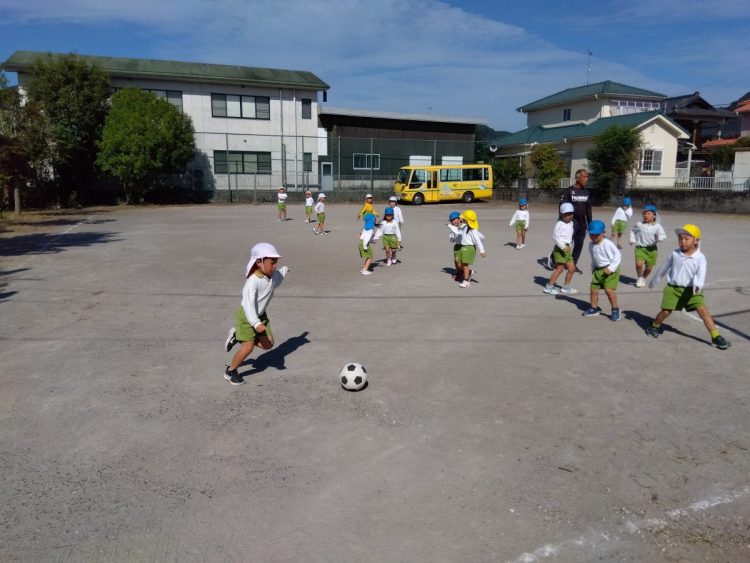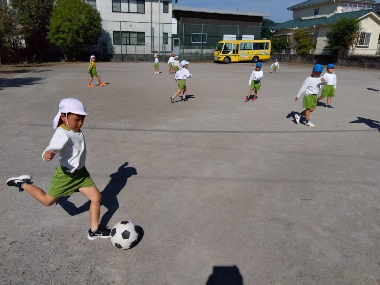 11月23日(日)にあるサッカー大会に向けて練習を頑張っています。さすがに年長さんはボール扱いが上手いようですが、周りを見ながらのポジショニングがもう一歩のようです。みんなで声を掛け合って頑張ってほしいと思います。