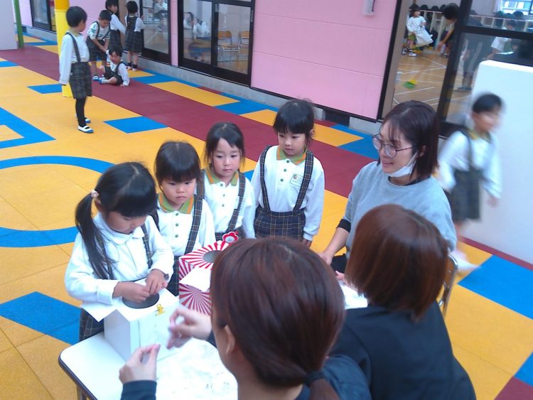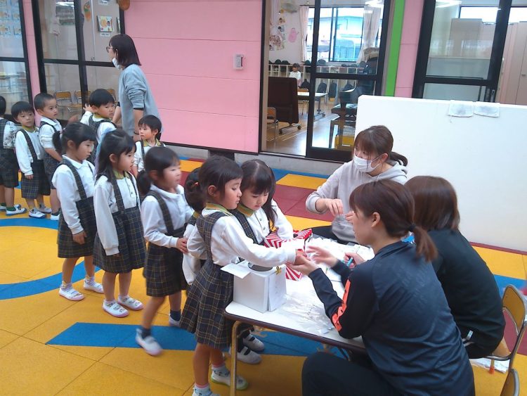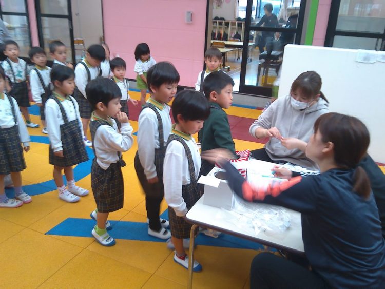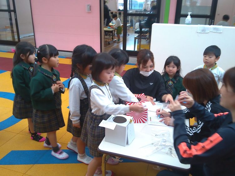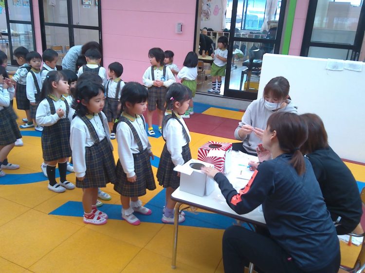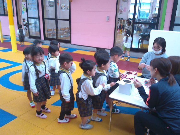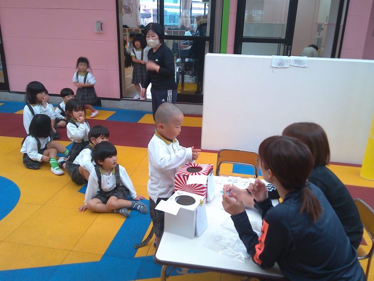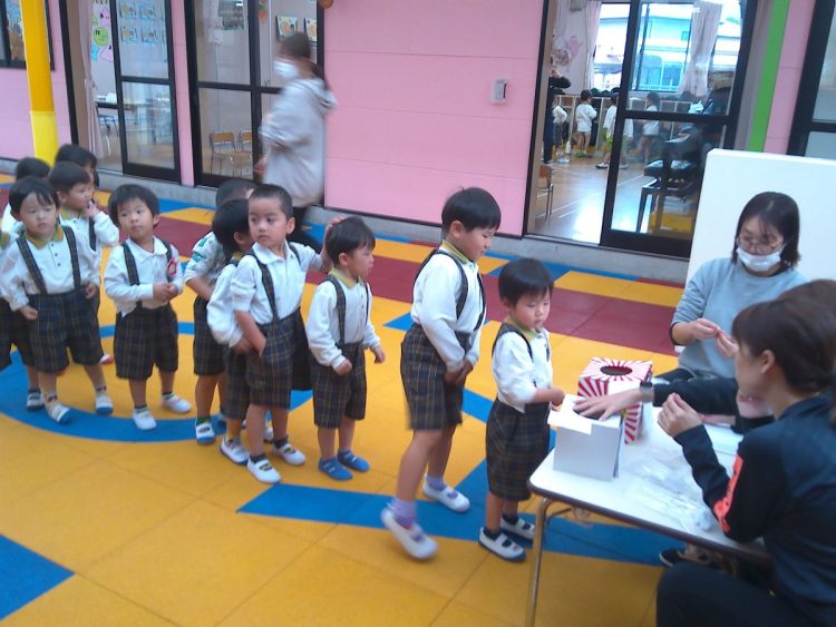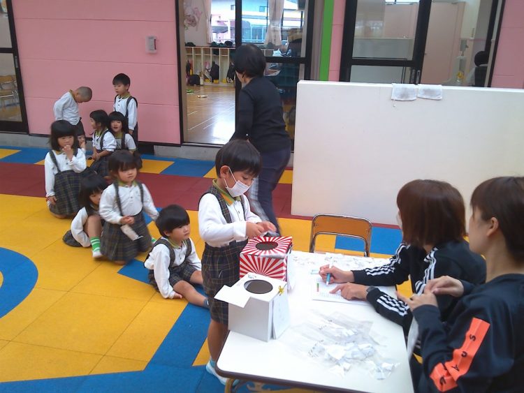 今日の昼から「あおばフェスティバルの座席の抽選会」を行いました。子どもたちに箱に入っているカードを引いてもらいました。結果については後日お知らせいたします。(写真は年中~年少)