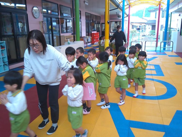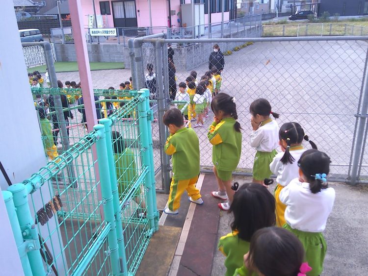 今日、火災を想定した「避難訓練」を行いました。給食室から出火したという想定で、今回は学童の広場に避難する訓練を行いました。避難場所を変えるのは風向きによって避難する方角が異なることを考慮しています。子どもたちは毎月実施していますので、落ち着いて避難することができていました。いつもお伝えしていますが、地震や火事はいつどこで発生するか分かりません。ご家庭でも各種状況を想定した避難等について話し合っておいていただきたいと思います。