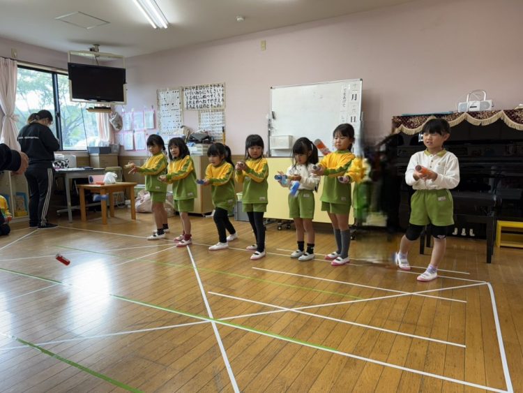 はな組に入っている実習生の設定保育がありました。今回は工作物(トンボ)を作って遊ぶ活動でした。最初に読み聞かせを行って、製作に入りました。完成したトンボを飛ばして競争していました。子どもたちは楽しく活動することができていました。指導計画案作成や準備まで、本当にお疲れ様でした。明日で実習は終わりです。最後まで頑張ってくださいね。