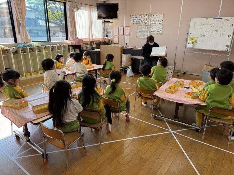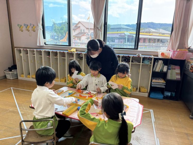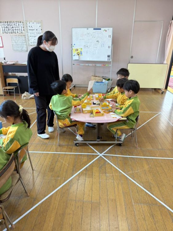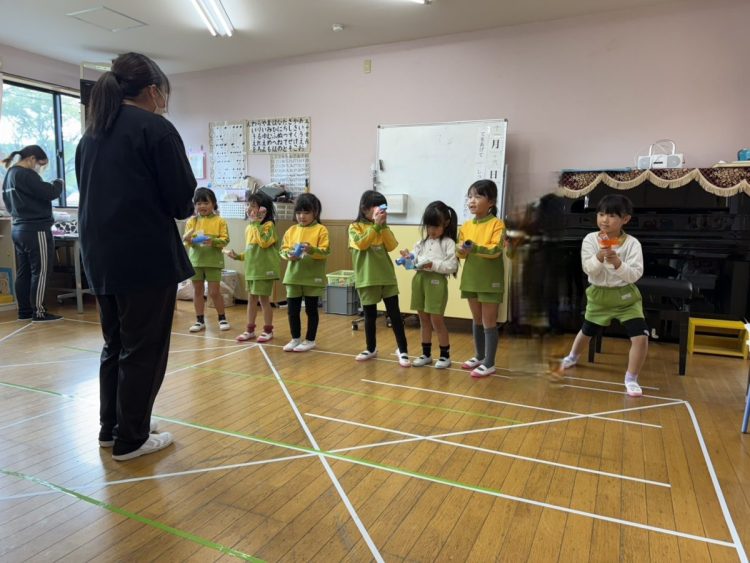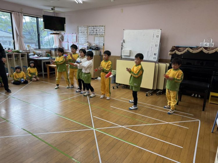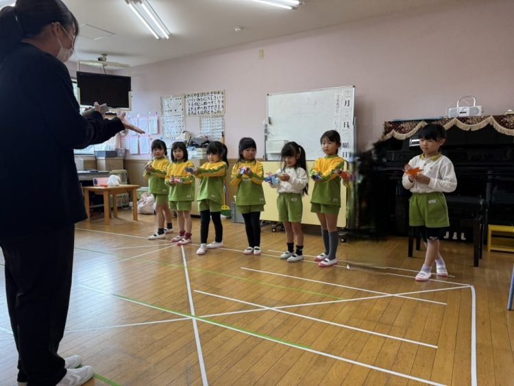 はな組に入っている実習生の設定保育がありました。今回は工作物(トンボ)を作って遊ぶ活動でした。最初に読み聞かせを行って、製作に入りました。完成したトンボを飛ばして競争していました。子どもたちは楽しく活動することができていました。指導計画案作成や準備まで、本当にお疲れ様でした。明日で実習は終わりです。最後まで頑張ってくださいね。
