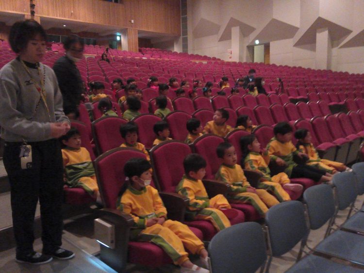 今日は、「あおばフェスティバルのリハーサル」(以上児)が市民会館でありました。大きなステージで戸惑っている子もいましたが、立ち位置などの確認ができました。和太鼓以外の様子はお伝えできませんが、みんな頑張っていました。当日は、子どもたちへの応援(拍手等)をよろしくお願いいたします。なお、明日は年長さんと未満児(うさぎ・りす)のリハーサルを行う予定です。
