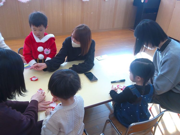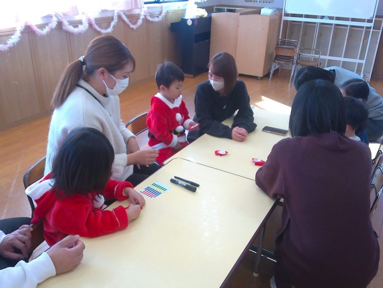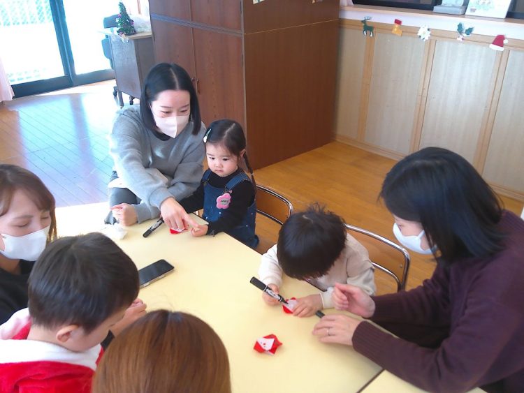 今日は2学期最後の「キッズクラブ」(未就園児の体験教室)でした。折り紙でサンタを作ったり、宝探しをしたりして楽しんでいたようです。最初のころに比べて参加者同士で仲良くなってきたようです。3学期も楽しみましょうね。