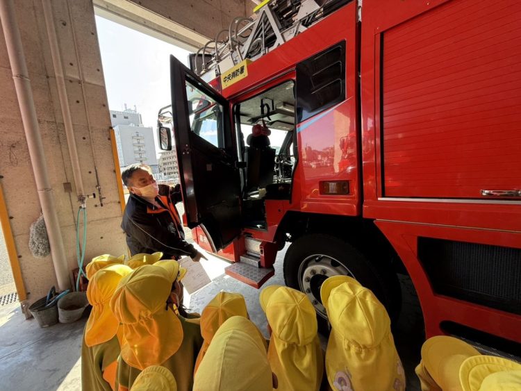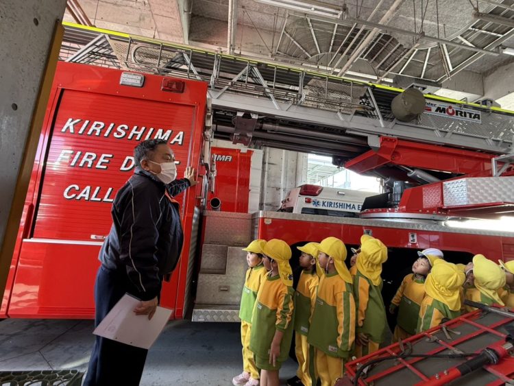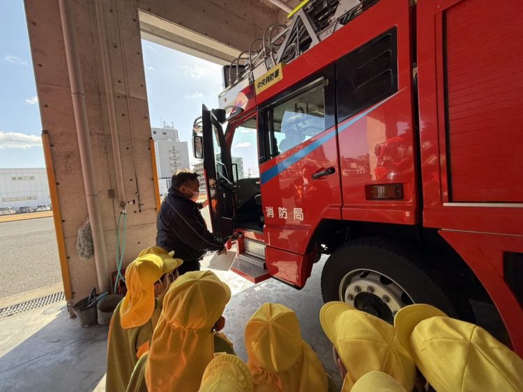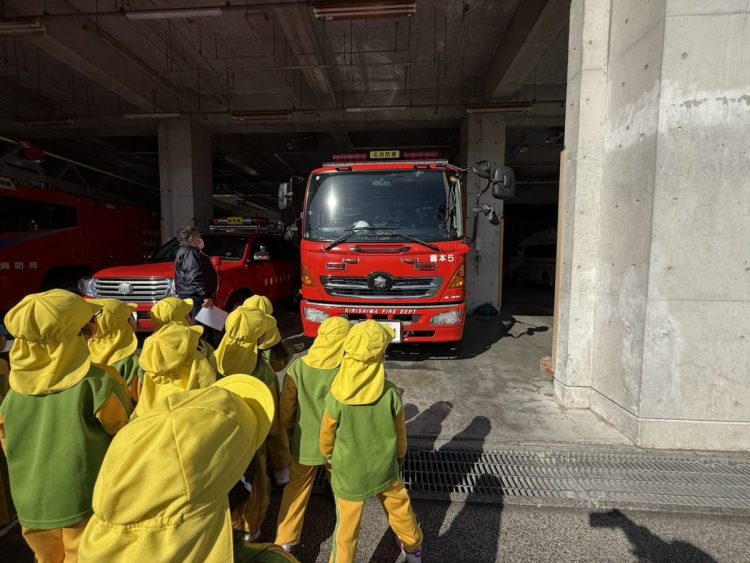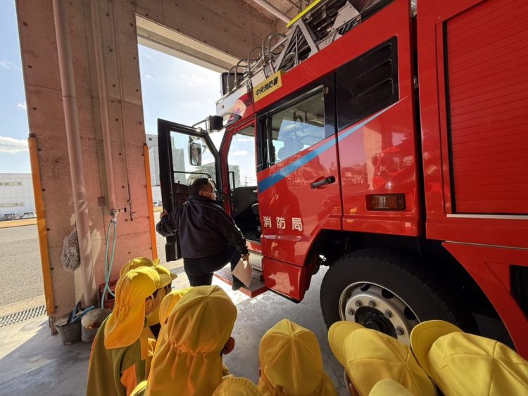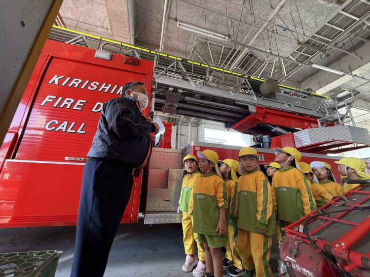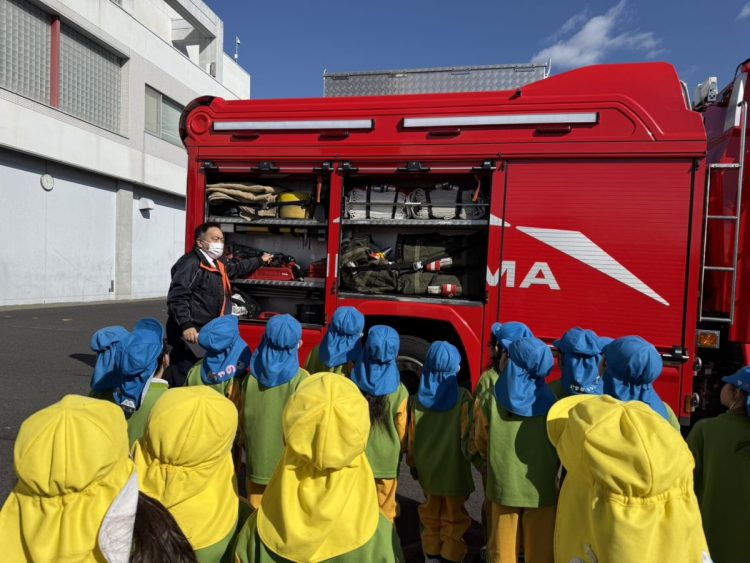 昨日は、年中さんが園外保育で「消防署の見学」に行きました。消防自動車🚒はもちろんのこと、指令室やお風呂など、施設内の部屋や設備などを詳しく見ることができたようです。救急車🚑の中も見学できたようです。昼食は総合体育館でとったようです。お弁当作りなど、ご協力ありがとうございました。