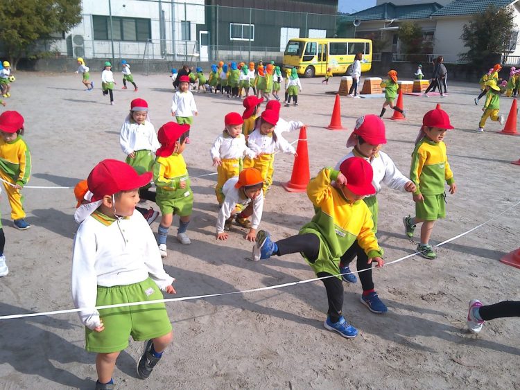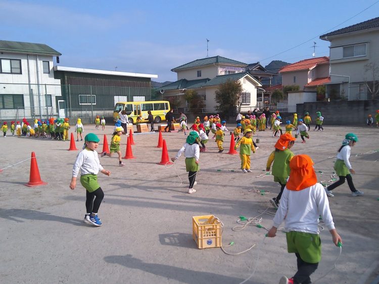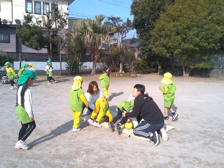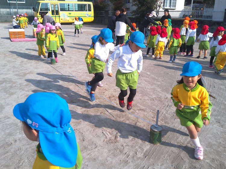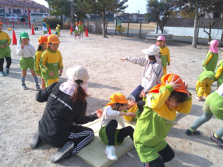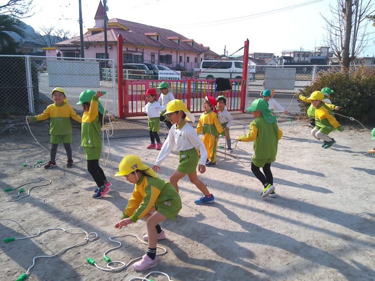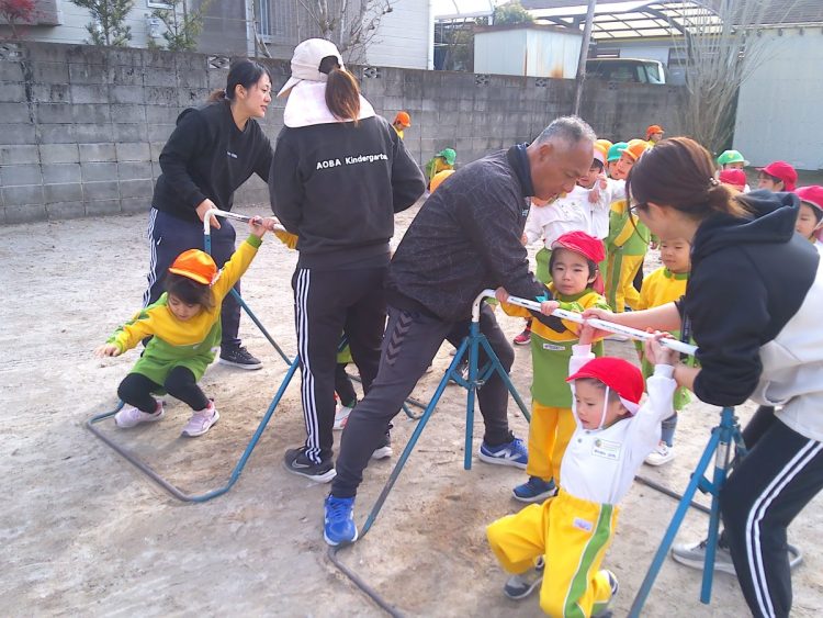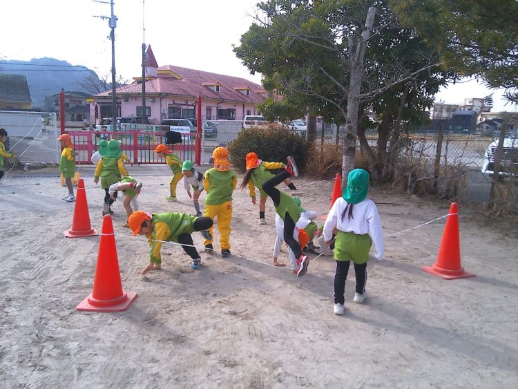 サーキットトレーニング形式で、跳び箱、鉄棒、マット、ゴム跳び、ボールつき、縄跳び、逆立ちなどを順番にしていきます。久しぶりにしたせいか、うまくできない子もいましたが、楽しそうに活動していました。怖がらずにリズムよくできるようになれるといいですね。