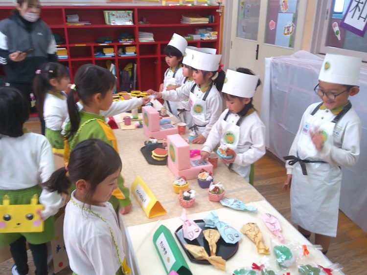 今日以上児園舎で、「お店屋さん」がオープンしました。