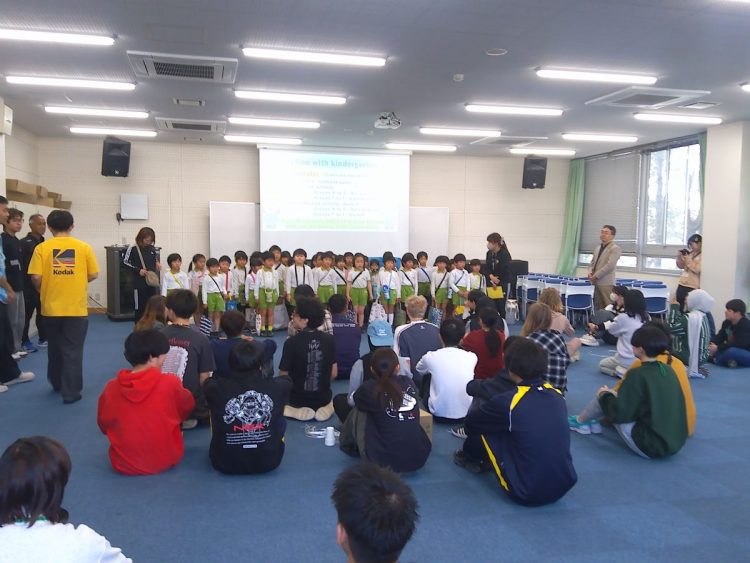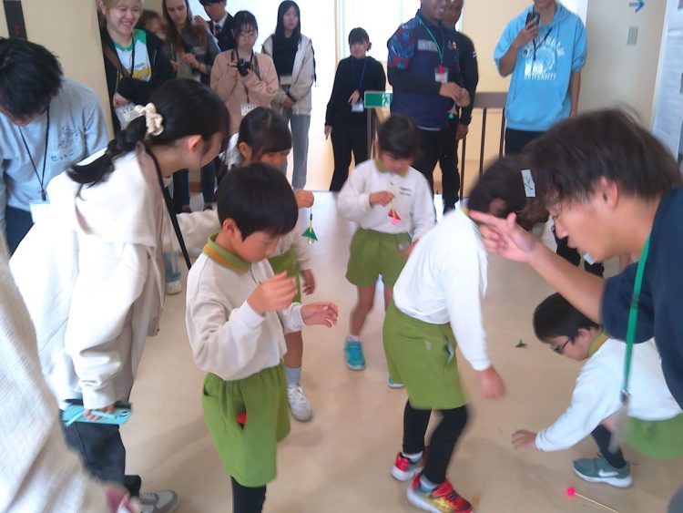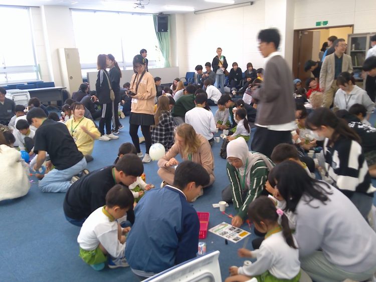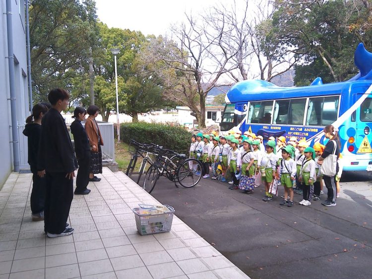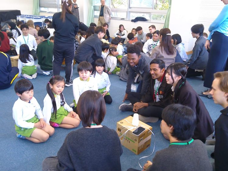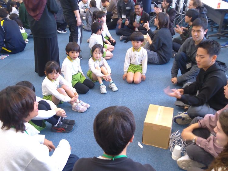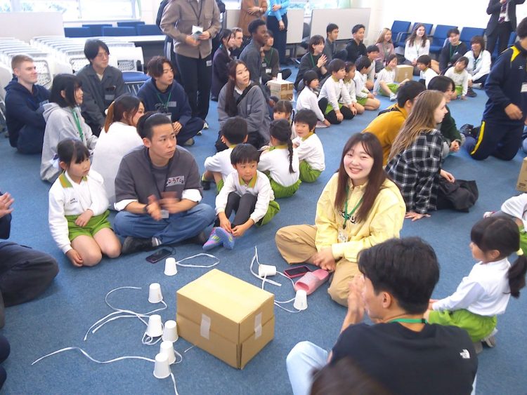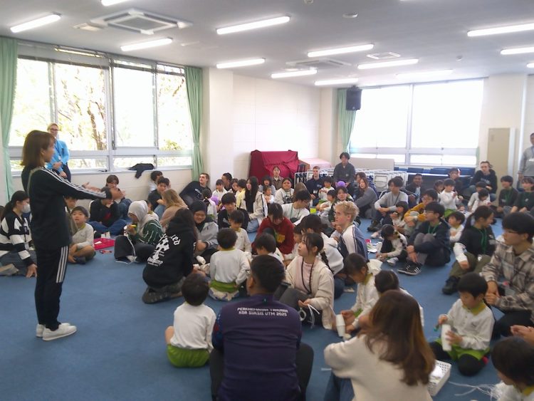 今日、年長さんが、「海外学生と高専生が共同で取り組む国際交流型のワークショップ」に参加しました。これは、未就学児童向けSTEAM(Science, Technology, Engineering, Art, Math)教材・玩具の試作品制作をテーマにした交流会(ワークショップ)で、たまたま本園が運営する児童クラブにバイトできている高専生とのつながりから実現したものでした。