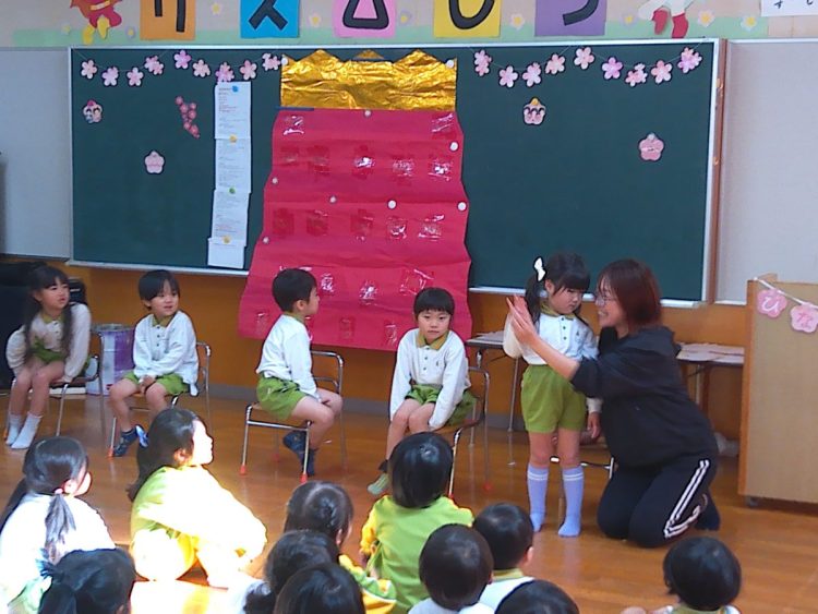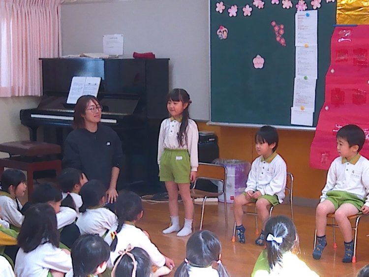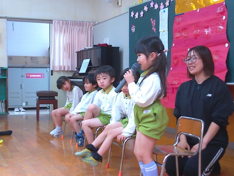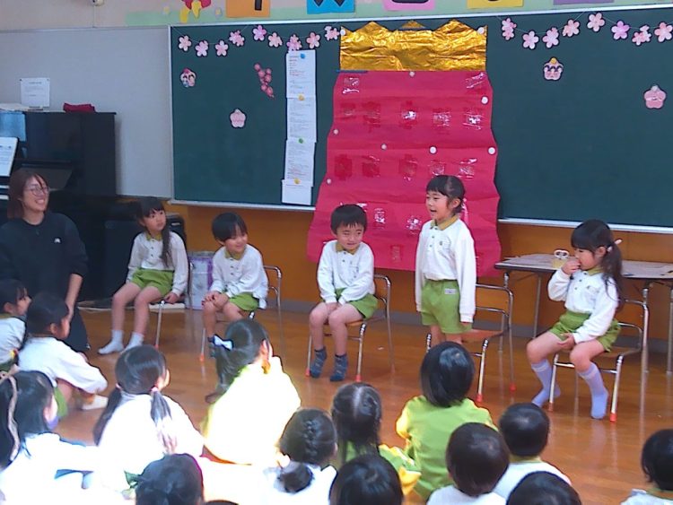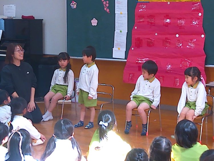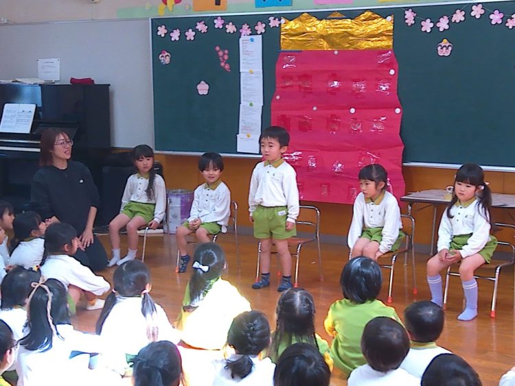 いつものとおりに、3月が誕生日の子どもたちが前に出てきて自己紹介や質問タイム、みんなからの歌のプレゼント、担任からのプレゼントなどがありました。