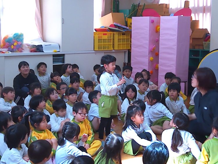 今日で一年間の誕生会がすべて終了しました。たくさんの人の前で自己紹介したり、質問に答えたりと緊張する場面もありましたが、昨年に比べてずいぶん成長した姿を見ることができたと職員の声がありました。これからも子どもたちの成長を促せるよう、職員一丸となって取り組んでいきたいと思います。