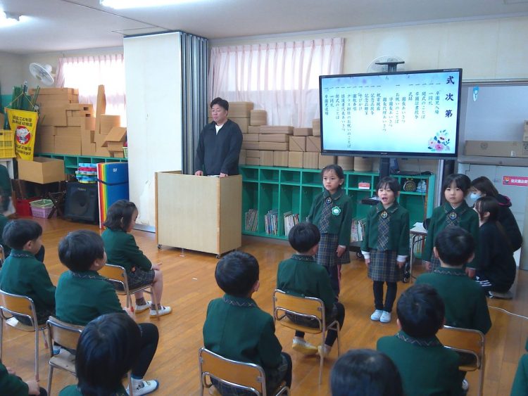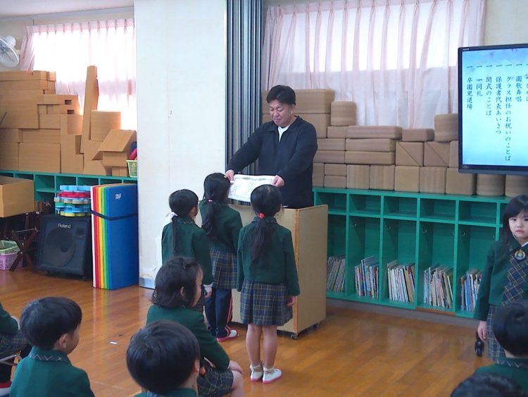 昨日は「卒園式の予行」の2回目を実施しました。園長先生から証書をいただくとき、緊張感が伝わってきました。