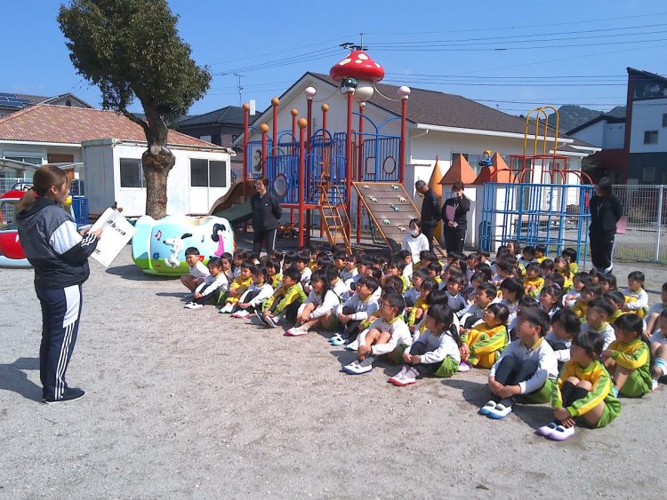 全体的にはおしゃべりせずに避難できていました。いつもお伝えしていますが、地震や火事はいつどこで発生するか分かりません。どんな状況でも落ち着いて行動することが大事です。子どもたちには「おはしも」の話をしています。子どもが覚えているか、「おはしも」は何なのか聞いてみてください。