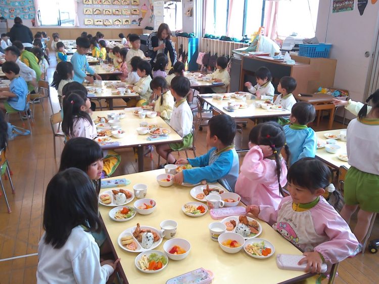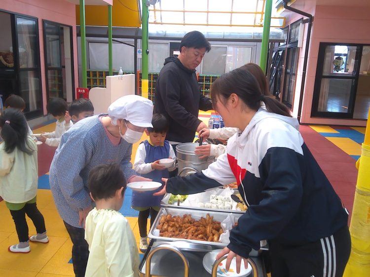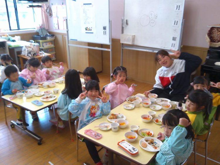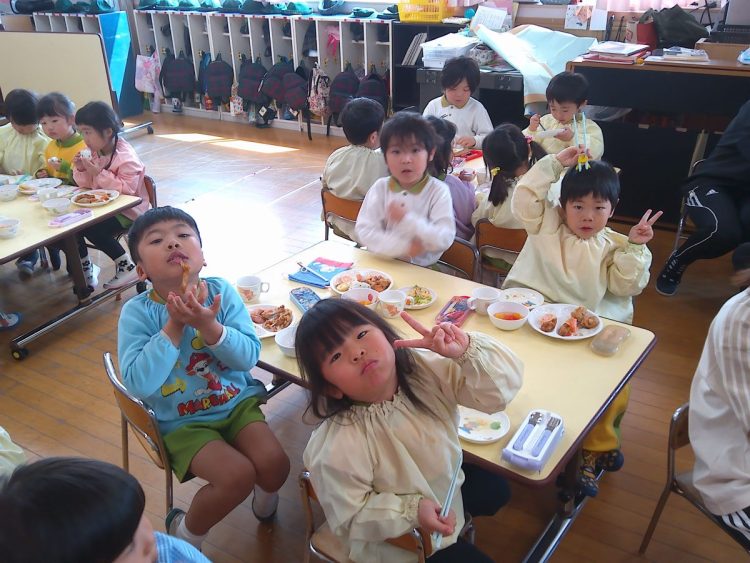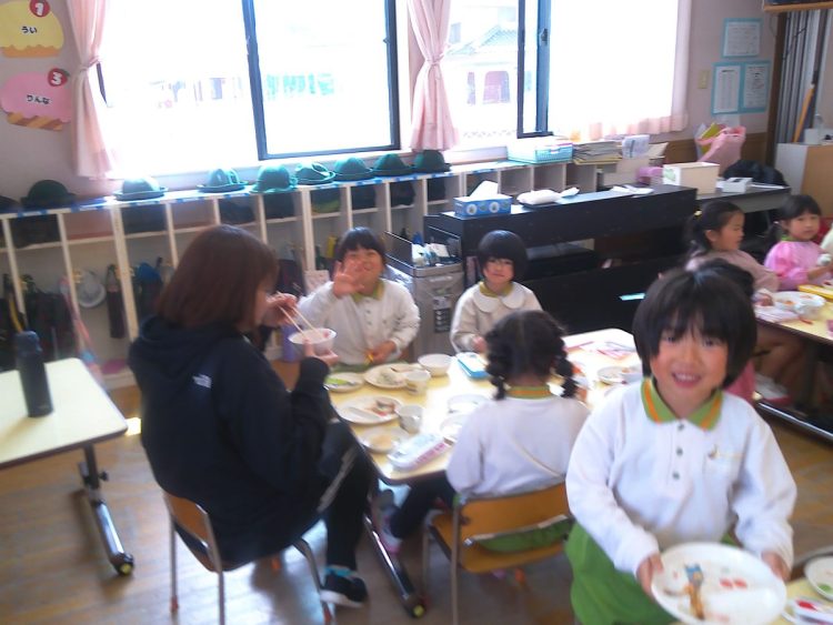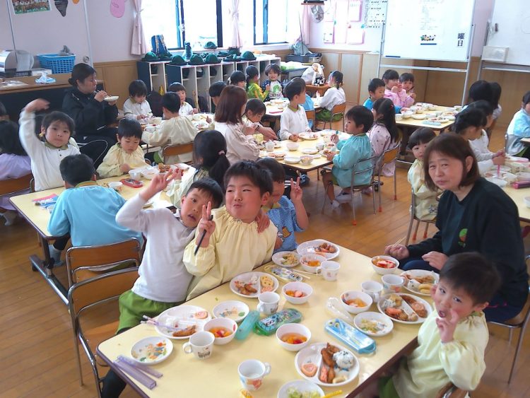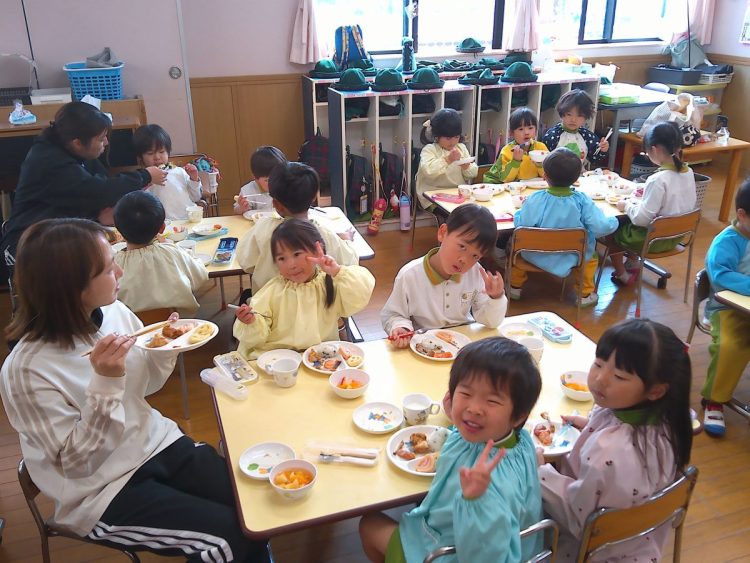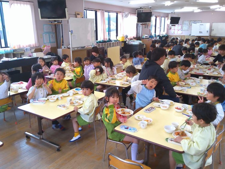 昨日の昼食は、年少~年長が入り混じっての「バイキング給食」でした。好きな具材を好きなだけ盛ってもらい、おかわりも自由でした。子どもたちはいつもと違うお友達や先生と一食に食事をし、楽しい雰囲気の中でおいしく給食をいただくことができました。