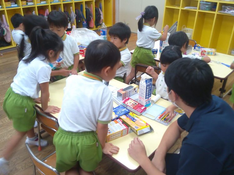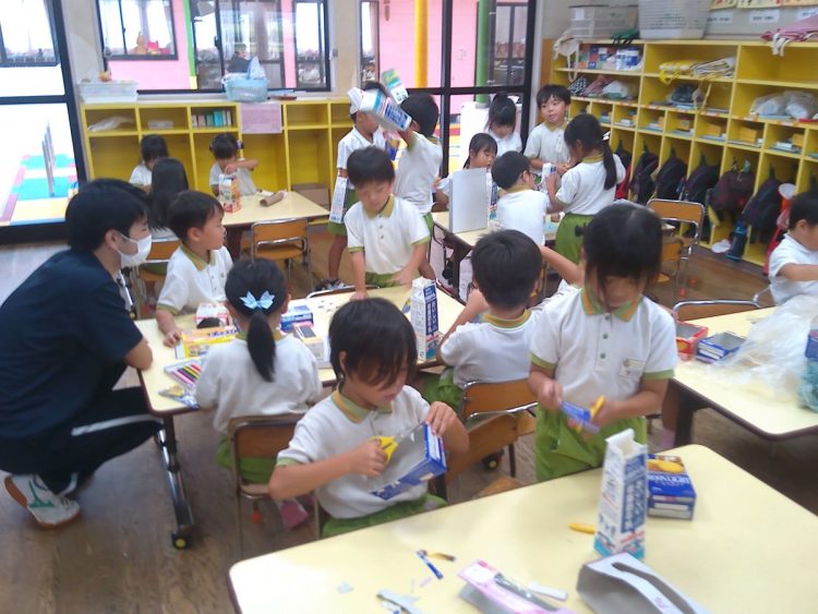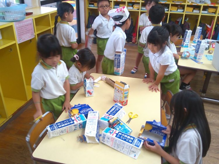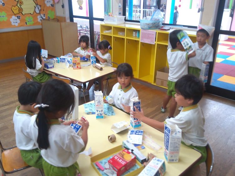 昨日、ほし組では牛乳パックや箱などを使った「工作あそび」を行っていました。自分なりに工夫して楽しく取り組んでいました。