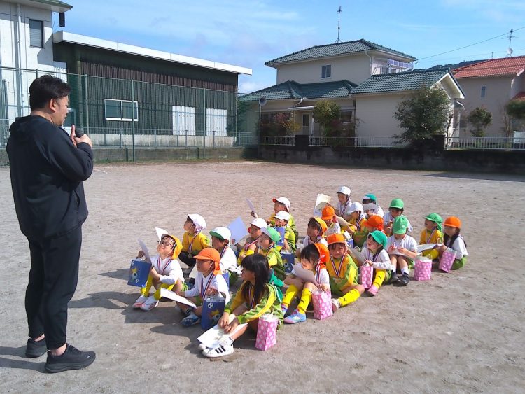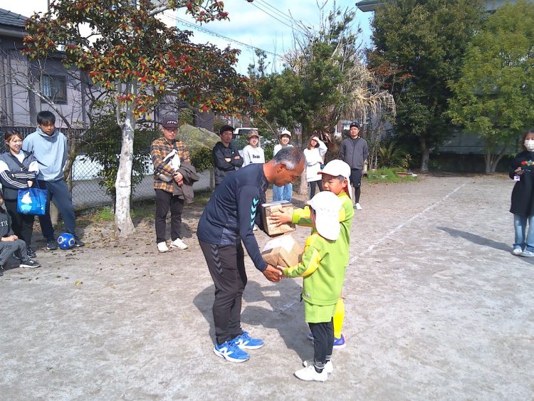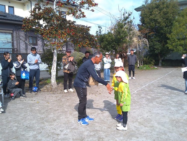 お別れサッカーでは、子ども対大人、子ども対職員など、名プレーあり、珍プレーありで楽しくプレーしていました。プレー後は、子どもから職員へのプレゼント、大人から子どもへのプレゼントなどがありました。年長さんは4月からは小学生。中にはサッカーを続ける子もいるようです。体を動かすことは大事なことです。小学生になってもいろいろなことに頑張ってくださいね。